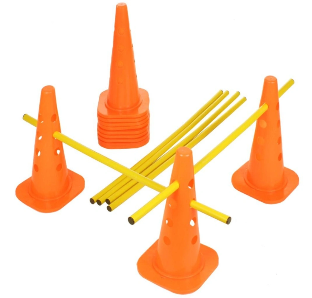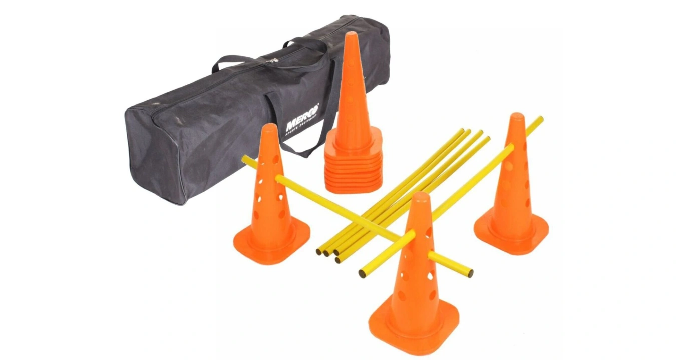 Součástí 12x kužel (46 cm) s dírami a 6x tyč (100 cm) v přenosné tašce. Vhodná tréninková pomůcka pro sportovce.