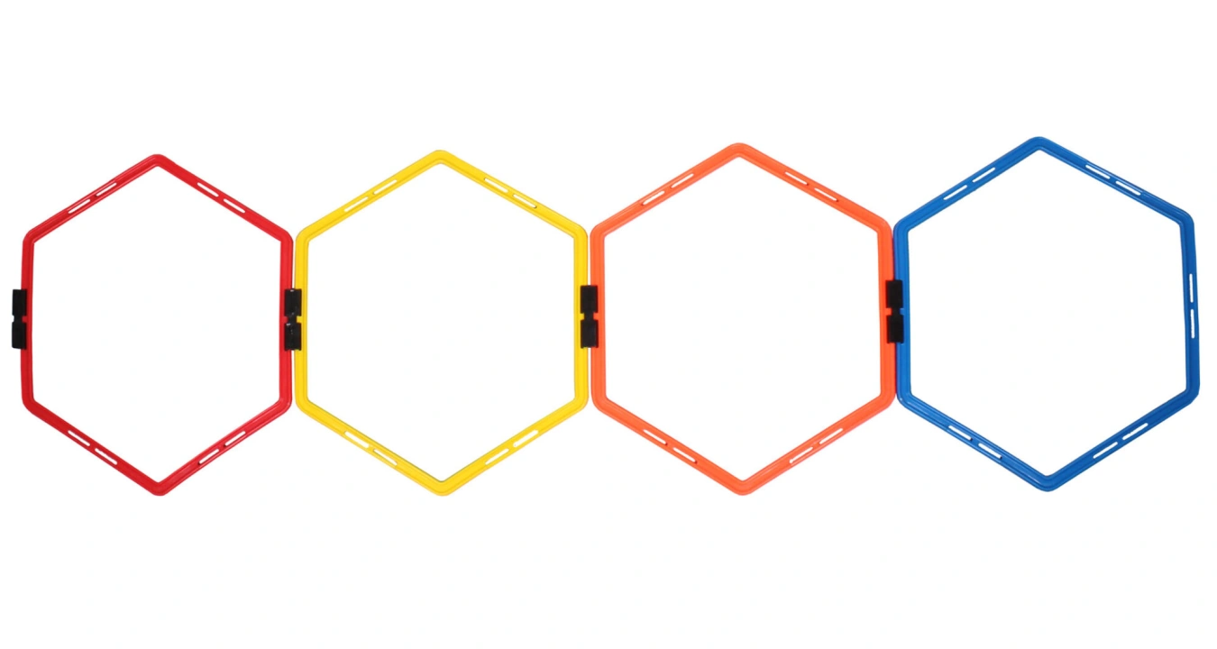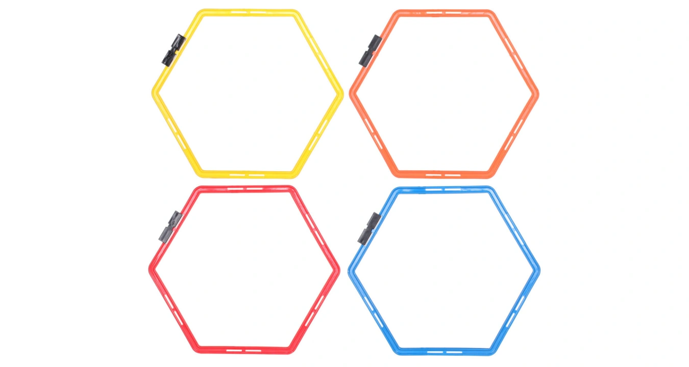 Merco Agility Hex, proskakovací šestiúhelník, o délce strany 28 cm, slouží ke kondiční přípravě sportovců a to stejně jako různé agility žebříky a proskakovačky. Zásadní rozdíl mezi těmito produkty je ale ve variabilitě. Zatím co pevné žebříky mají dané parametry, u proskakovacího šestiúhelníku Merco Agility Hex si můžete koupí libovolného počtu kusů a pomocí spojek, které jsou součástí každého dílu, vytvořit trať přesně podle svých potřeb a požadované obtížnosti. Merco Agility Hex Vám umožní vytvářet nekonečné množství různých variant a obtížností při tréninku rychlosti, rovnováhy a kordinace bez ohledu na Vaše sportovní zaměření. Hmotnost jednoho kusu je 210 g.
