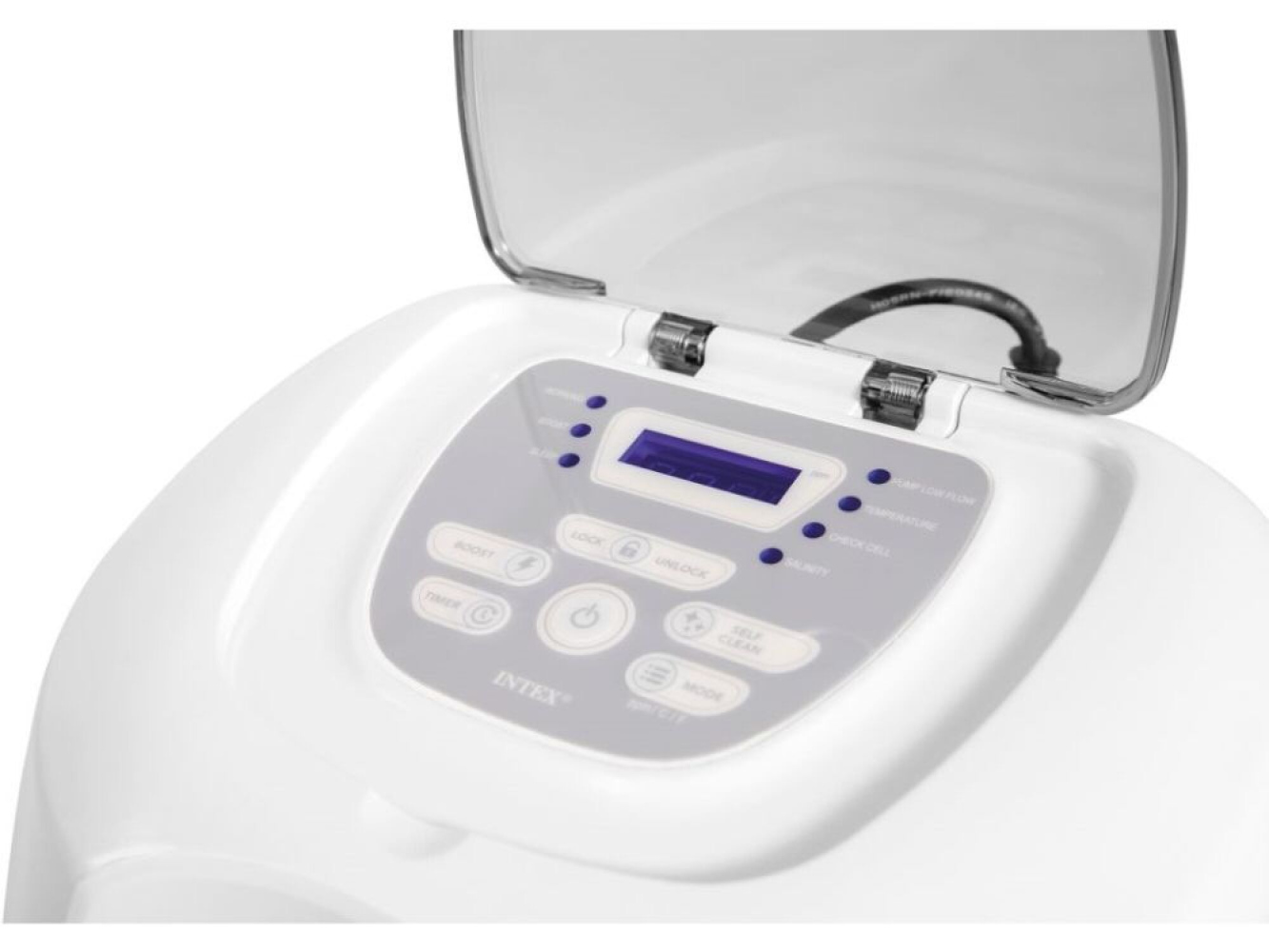 Chlorinátor s integrovaným systémem elektolýzy soli redukuje potřebné množství chlóru až o 70 %. Vhodný pro všechny nadzemní bazény Intex i jiné do objemu vody 26,5 m2