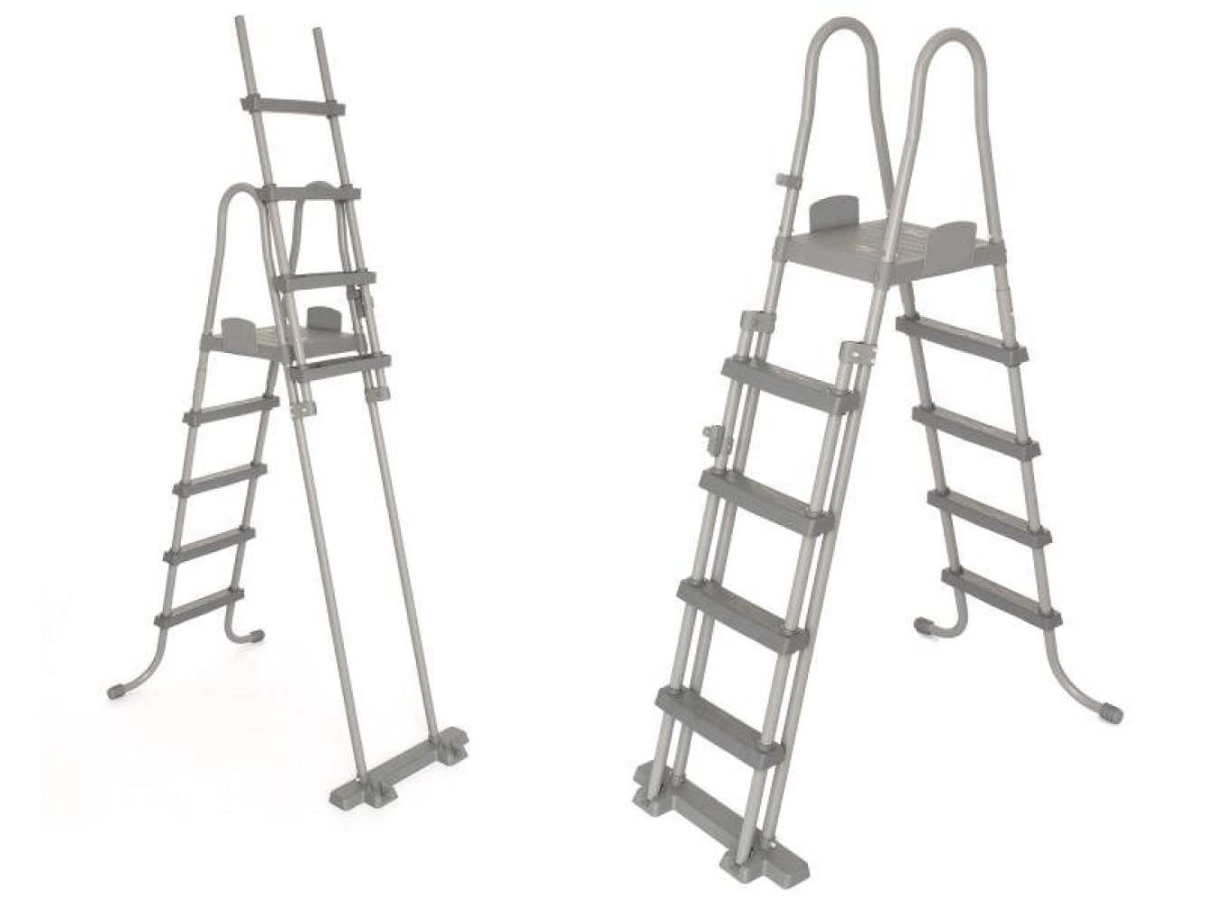Bazénové schůdky se skládají ze čtyř protiskluzových schodů z plastu. Rám žebříku je z oceli a má užitečné zatížení 150 kg. Odstranitelná přední část schůdků pro zamezení vstupu dětí do bazénu z důvodů bezpečnosti. Celý je velmi snadný sestavit.