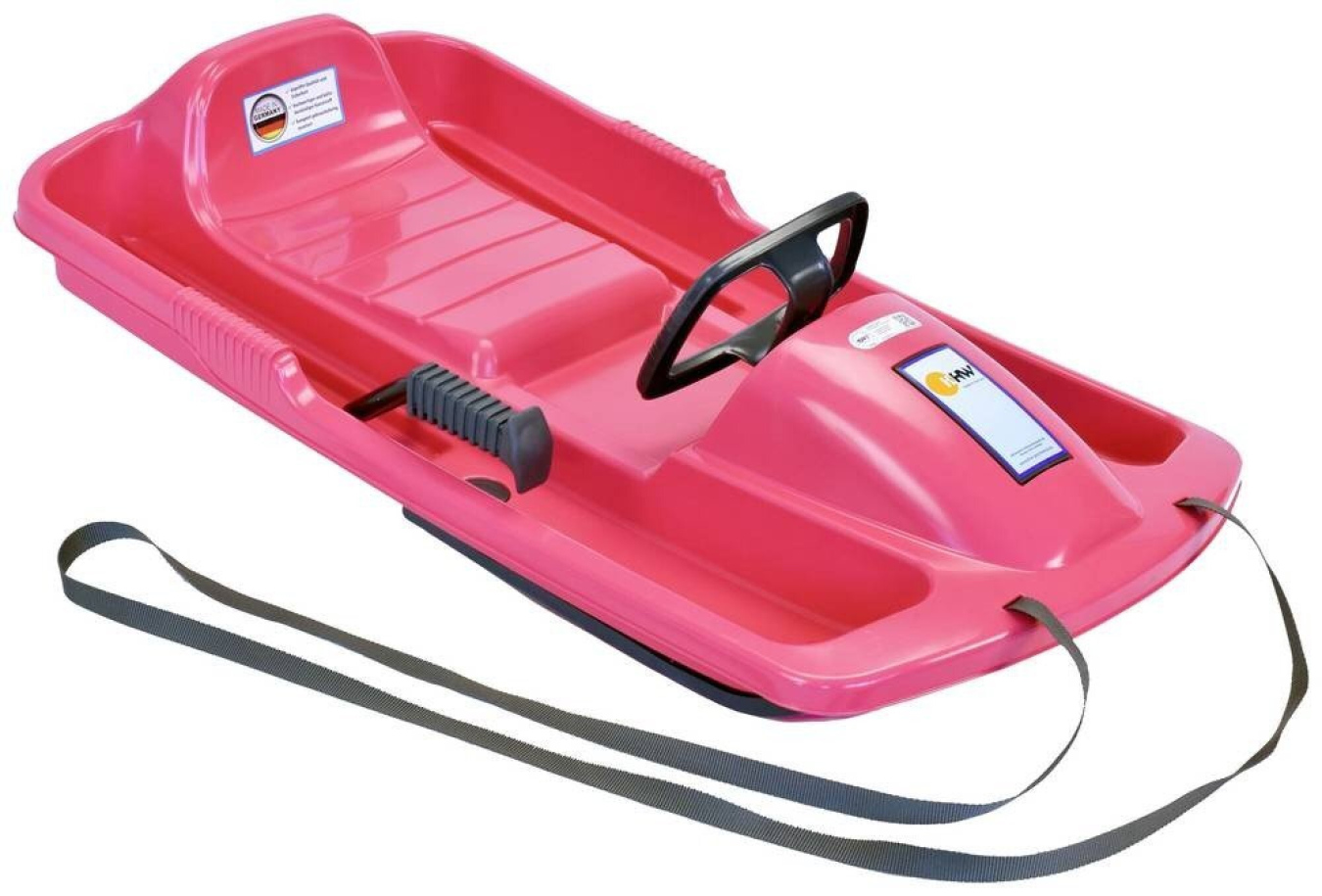 Snow Fox je sportovní řízený bob s velmi příznivým poměrem ceny a užitné hodnoty.Řízení volantem zajišťuje nejenom jisté ovládání, ale umožňuje i jízdu v elegantních křivkách. Postranní kovová brzda na jednu ruku dodává pocit bezpečí i za rychlé jízdy. Zvýšené postranice, vysoká zadní část sedáku, drážky na sedací ploše a nízko položené těžiště jsou rovněž garantem bezpečné jízdy, stejně jako možnost pevného zapření nohou. Kovová brzda s tvarovaným plastovým úchopem je na pravé straně. Vepředu jsou drážkované nášlapy a vyvýšená část pro pevné zapření nohama. Sedák je vyvýšen a jezdec nemusí sedět ve sněhu. Vysoká opěra pro zapření. Plastový úchop na pevné šňůře pro tažení je samozřejmostí.Volant je určen jak pro ovládání směru, tak i pro precizní držení jezdce při jízdě.