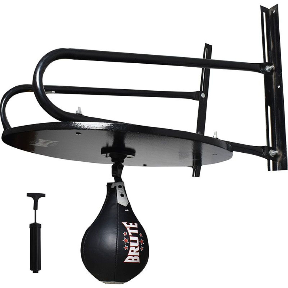 Set zahrnuje vše, co potřebujete k efektivnímu tréninku: stabilní nástěnný držák s deskou, velký černý speedball s logem Brute, čtyři nástěnné kotvy, nylonový otočný mechanismus a mini pumpičku pro snadné dofukování.