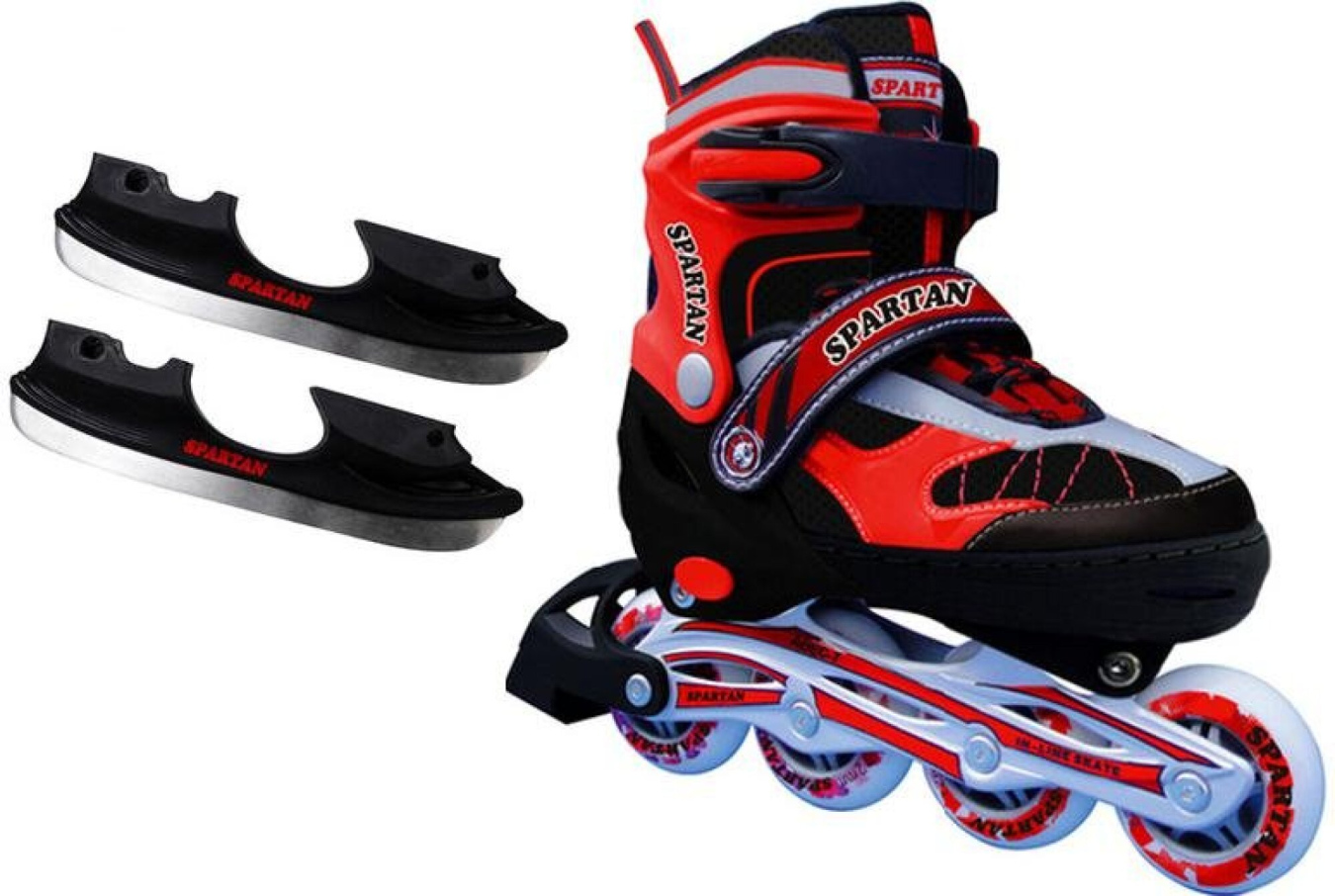 Kombinované nastavitelné hokejové zimní i kolečkové brusle. Díky nastvitelné velikosti je možnost využívat brusle po delší dobu. Brusle kombi hockey natahovací jsou vhodné pro začátečníky i mírně zdatnější jezdce, Svým designem naplní i splňují i vyšší nároky na pohodlí nohou. Kvalitní ložiska a kolečka umožňují komforní bruslení.