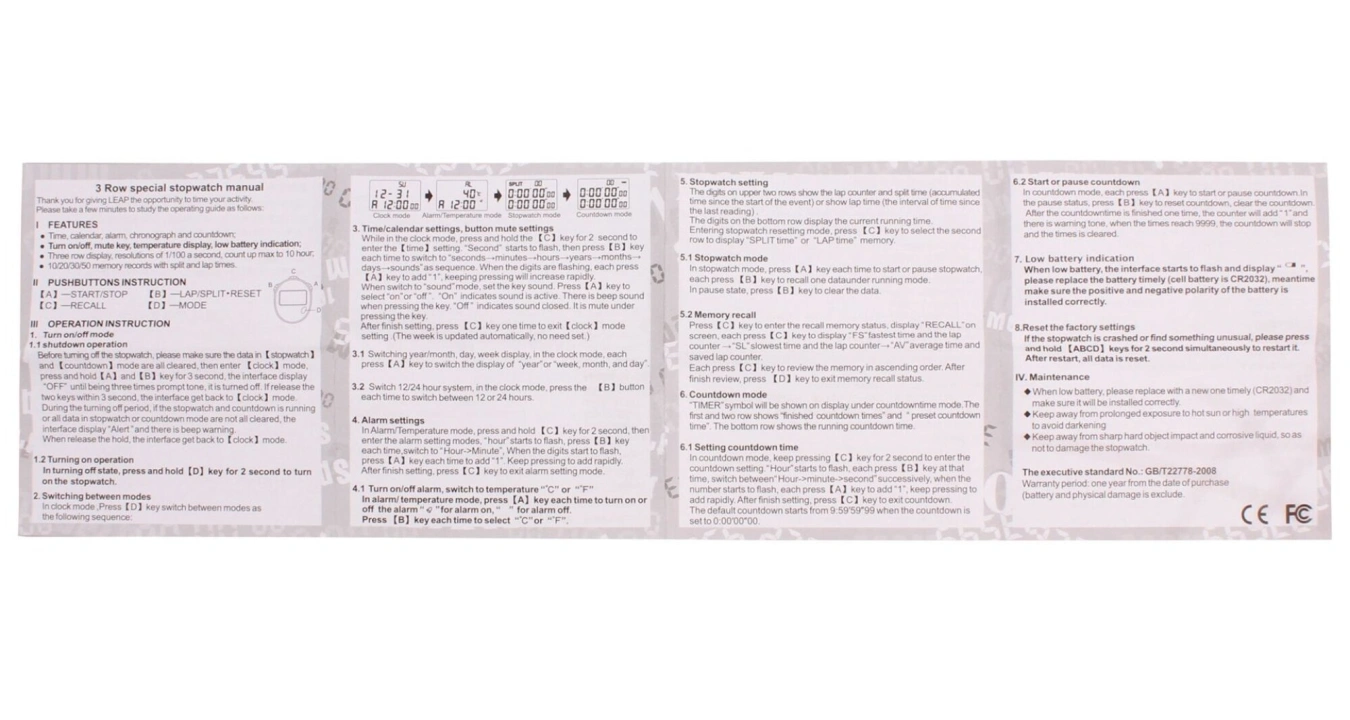 - Třířádkový displej, rozlišení 1/100 za sekundu, počítání max. do 10 hodin;
