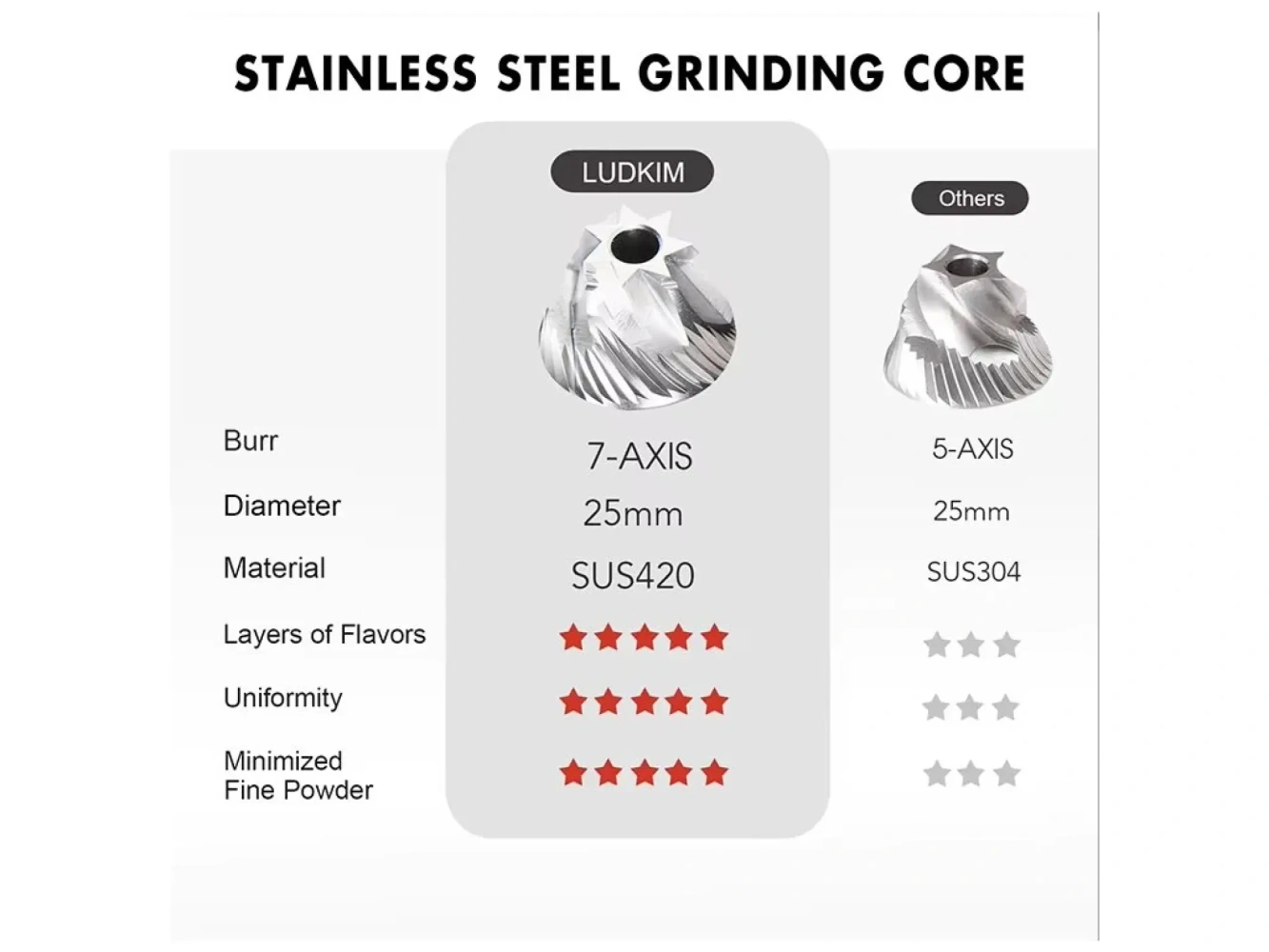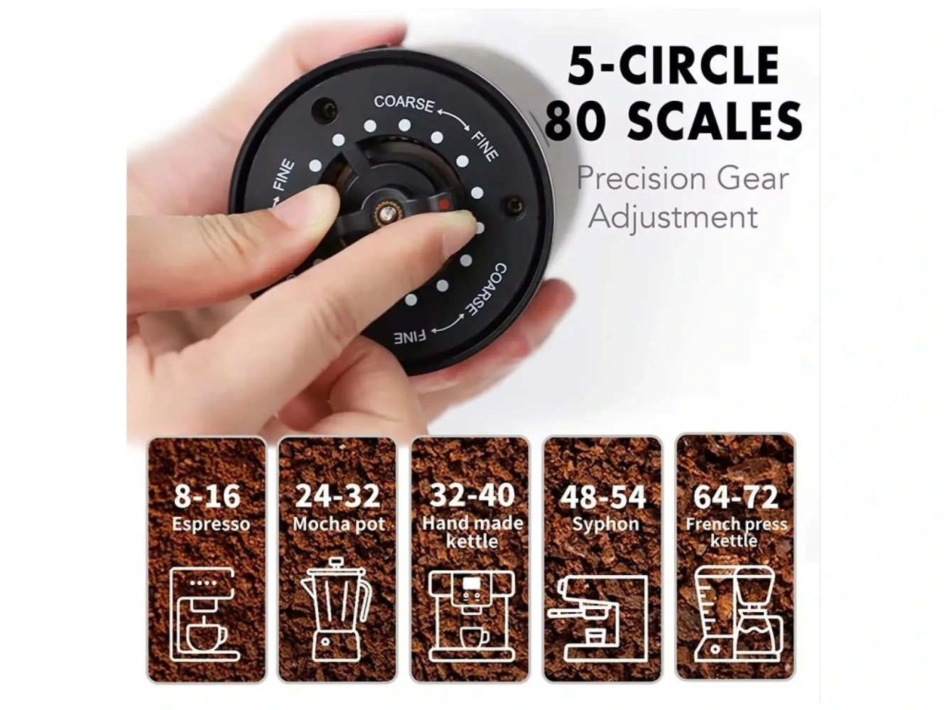Mlýnek je vybaven precizními ocelovými mlecími kameny, které garantují rovnoměrné mletí a optimální extrakci chutí. Různost hrubosti si snadno nastavíte podle typu přípravy – od jemného prachu pro espresso po hrubší zrnitost vhodnou pro French press. Nastavit je možné až pět různých hrubostí zrnkové kávy. Každý doušek tak bude perfektně vyvážený a aromatický. Těžko odoláte, abyste si nedali ještě jeden hrnek černého moku!