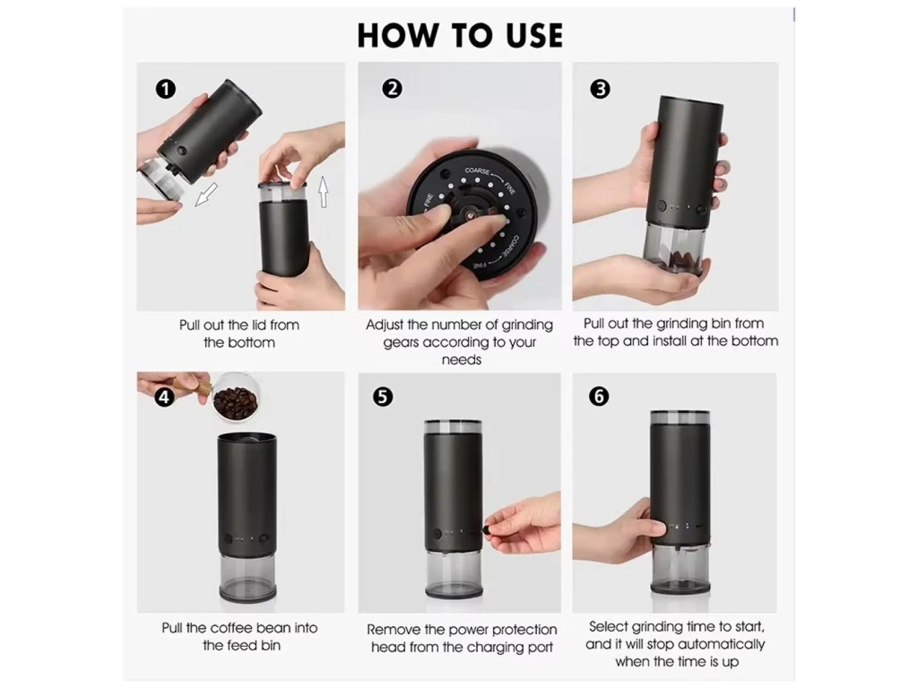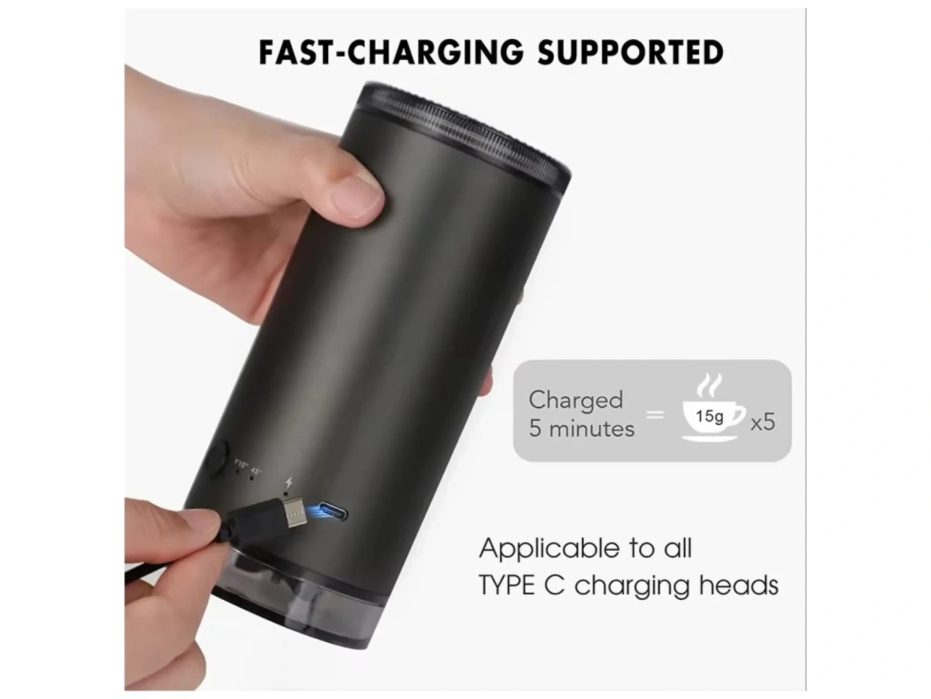 Díky ergonomickému designu a lehké, avšak odolné konstrukci, se mlýnek pohodlně vejde do každého zavazadla. Jeho provoz na vestavěnou lithiovou baterii s USB nabíjením umožňuje maximální flexibilitu při používání doma, v kanceláři i na cestách. S elektrickým cestovním mlýnkem si budete moci dopřát dokonalou chuť a aroma z každého doušku i v místech, kde není elektrická zásuvka, baterie totiž vydrží na přípravu až 50 šálků dokonalé kávy.