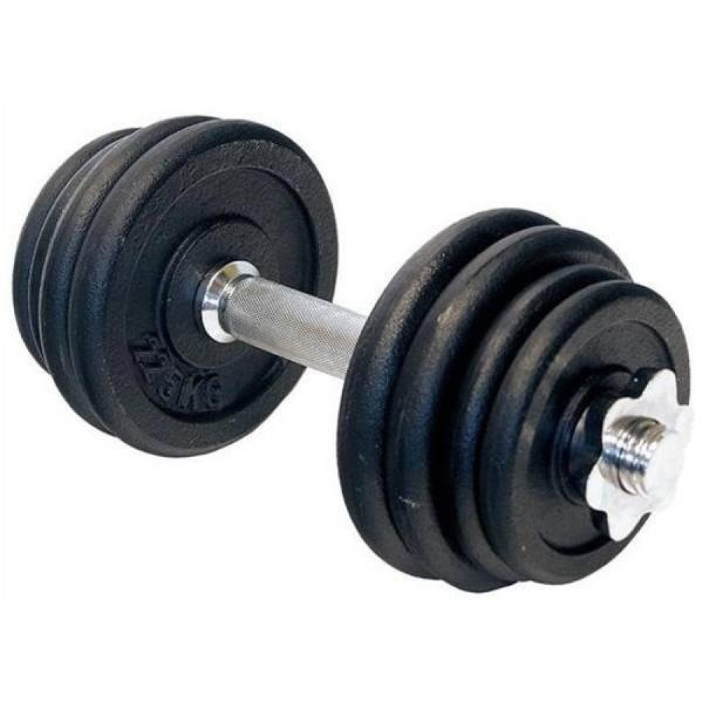 Jednoruční činka je vhodná pro domácí posilování s možností měnění hmotností a využití pro různé věkové a kondiční skupiny. Je vhodná pro posilování horní poloviny těla. Skládá se ze hřídele a šroubovacích matic, které zamezují sklouznutí závaží a následnému úrazu. Fotografie je pouze ilustrační.