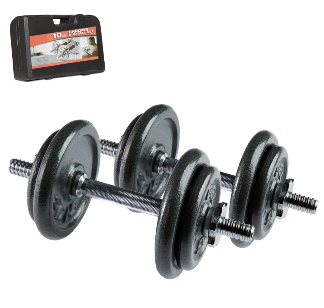 Činkový set v provedení slitiny ocely a chromu s 8-mi kotouči. Celková hmotnost sady je 10 kg. Hmotnost činek lze variabilně upravit, případně rozšířit o další závaží. Kvalitní zpracování spolu s protiskluzovými rukojeti nabízí mimořádný komfort při cvičení. Celá sada je dodávána v pohodlném přenosném kufříku.