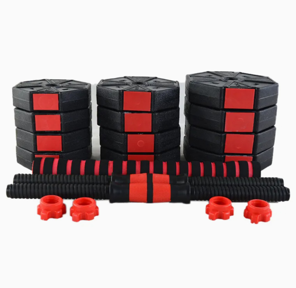 - Kompletní nakládací sada dvou jednoručních a jedné obouruční činky