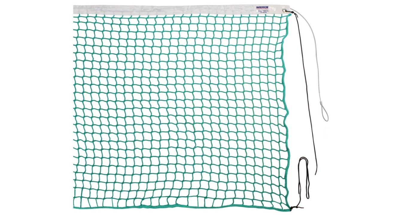 Tenisové sítě řady Merco jsou vyrobené od renomovaného evropského výrobce v takové kvalitě, aby splňovaly požadavky normy EN 1510. Tenisová bezuzlová síť Merco Club TN40 je vhodná pro tenisové kluby a pro pravidelné hráče. Síť je vyrobená z vysoce pevného, bezuzlového polypropylenu, který je odolný proti UV a povětrnostním vlivům. Díky tomu je síť vhodná pro použití v hale i na venkovních kurtech. Rozměry sítě jsou 12,8 x 1,07 m, velikost oka 35 mm a síla 4 mm. Horní bílá PES páska přidává síti dlouhou životnost. Síť se napíná pomocí ocelového lanka, které lze jednoduše zkrátit.