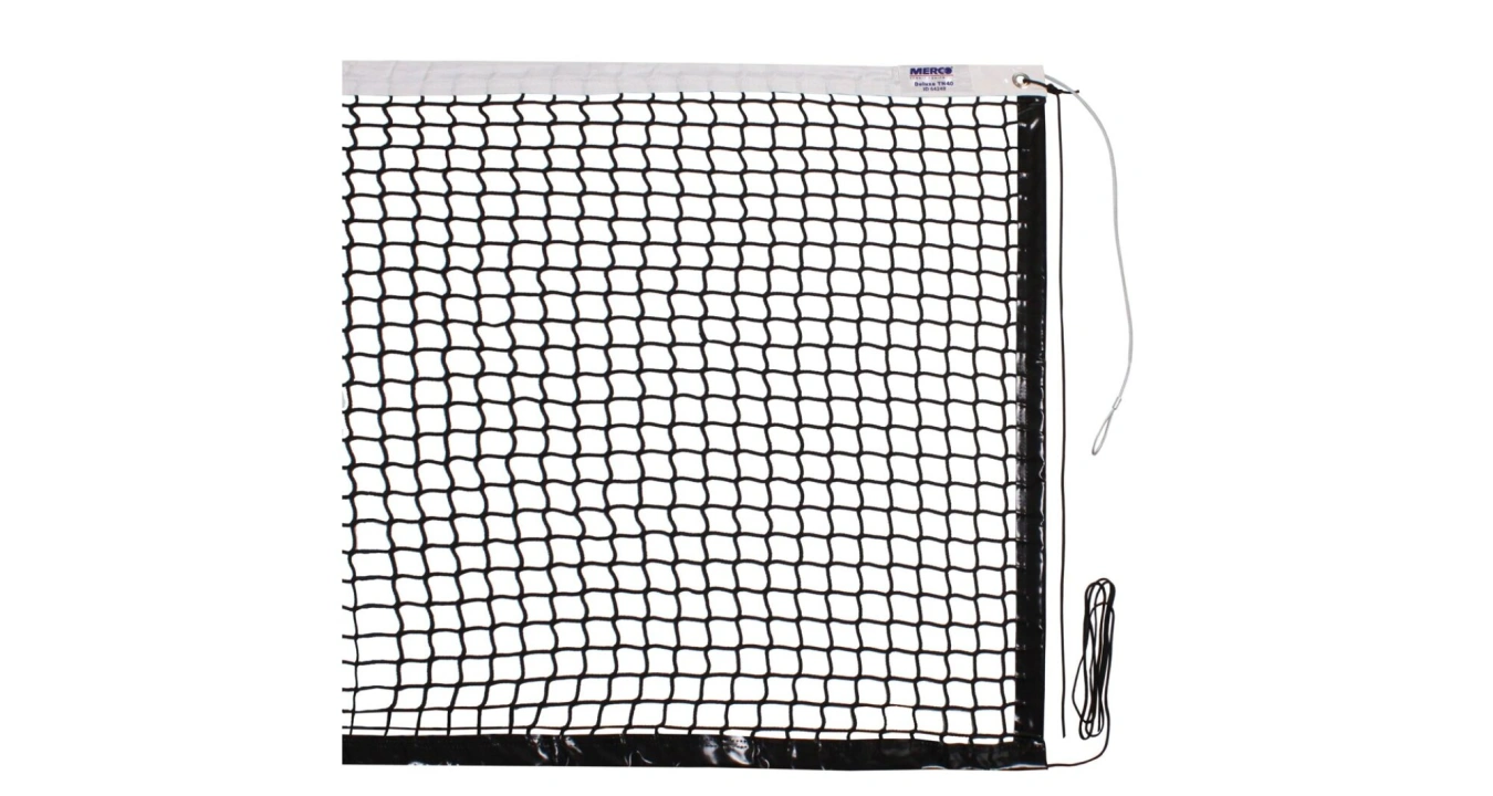 Tenisové sítě řady Merco jsou vyrobené od renomovaného evropského výrobce. Kvalitní síť na tenis Deluxe TN40 je vhodná pro tenisové kluby a pro hru na všech výkonnostních úrovních. Síť je vyrobená z vysoce pevného, bezuzlového polypropylenu, který je odolný proti UV a povětrnostním vlivům. Díky tomu je síť vhodná pro použití v hale i na venkovních kurtech. Má klasické rozměry 12,8 x 1,07 m, sílu 4 mm a velikost oka 35 mm. Horní bílá PES páska s výškou 55 mm přidává síti dlouhou životnost. Síť se napíná pomocí ocelového lanka. Tenisová síť Deluxe TN40 splňuje všechny požadavky normy EN 1510.