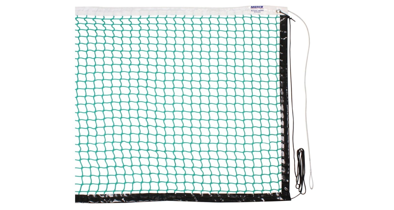 Tenisové sítě řady Merco jsou vyrobené od renomovaného evropského výrobce v takové kvalitě, aby splňovaly požadavky normy EN 1510. Tenisová bezuzlová síť Merco Deluxe TN50G je vhodná pro tenisové kluby a pro hru na všech výkonnostních úrovních. Síť je vyrobená z vysoce pevného, bezuzlového polypropylenu, který je odolný proti UV a povětrnostním vlivům. Díky tomu je síť vhodná pro použití v hale i na venkovních kurtech. Rozměry sítě jsou 12,8 x 1,07 m, velikost oka 35 mm a síla 5 mm. Horní bílá PES páska přidává síti dlouhou životnost. Síť se napíná pomocí ocelového lanka, které lze jednoduše zkrátit.