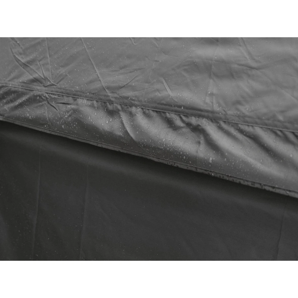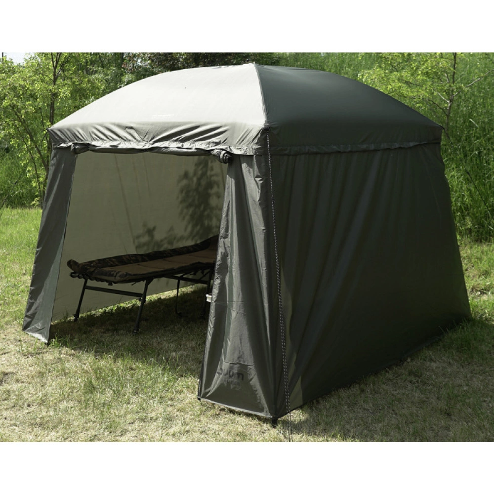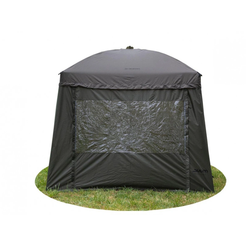 Rybářský deštník DUUM 250 Full Cover má revoluční a ojedinělou konstrukci. Krytý půdorys 2,5x2,5m je díky použití čtyř zesílených sklolaminátových ramen přísně čtvercový, což umožňuje stoprocentní využití vnitřního prostoru. S odlehčeným rámem se lépe manipuluje a ulehčuje stavbu celého deštníku. Kryt zipu je umístěný pod ramena. Při dešti tak voda plynule stéká, nehromadí se u švu a tím se minimalizuje možnost prosáknutí vody dovnitř. Na koncích ramen jsou už od výroby integrované klouby se závitem na teleskopické tyče. Při dokoupení čtyř tyčí (kód 5104100ES) lze deštník na ně postavit a odšroubovat středovou tyč. Vznikne tak uvnitř prostor pro volný pohyb.