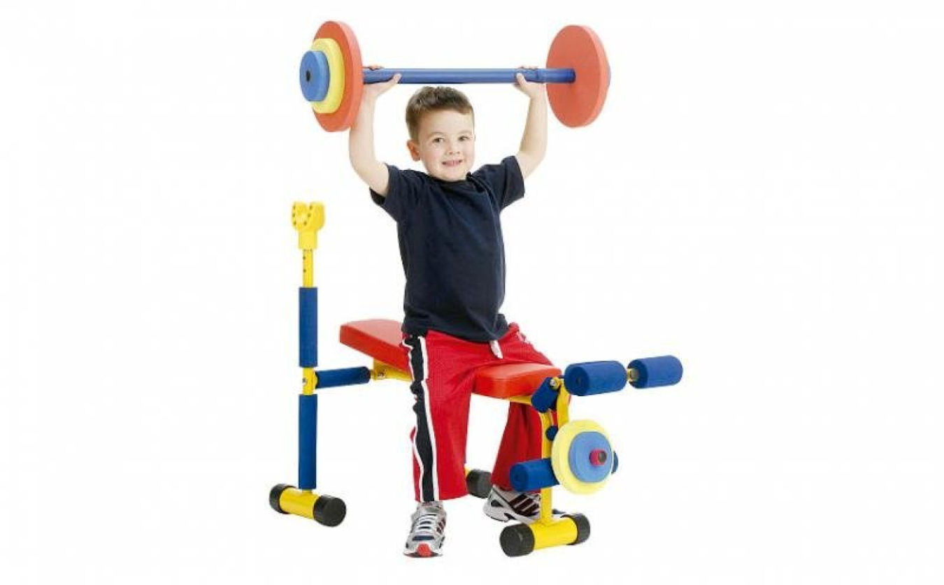 Zábavná a bezpečná fitness lavice pro děti. Znatelně podporuje zdravý životní styl. Tato fitness pomůcka se skládá z dětské lavice, tyče a závaží. S tímto vybavením je možno procvičovat celé tělo, zejména hrudník, ramena, ruce, ale také svaly na nohou. To vše s bezpečným závažím odpovídajícím jejich hmotnosti a věku. Možnost provádění klasického bench-pressu, ale také dřepů, zdvihů závaží atd. Zejména tyto tři cviky jsou však pevným základem při cvičení a rozvoji těla. Kromě zdravého životního stylu, Vaše dítě zlepšuje také celkovou stabilitu a podporuje správný rozvoj těla. Závaží je z odolného PE a umožňuje zvyšovat/snižovat váhu naplněním pískem. Konstrukce lavice je pokryta bezpečnou tvrzenou pěnou, která zabraňuje jakémukoliv možnému nebezpečí.