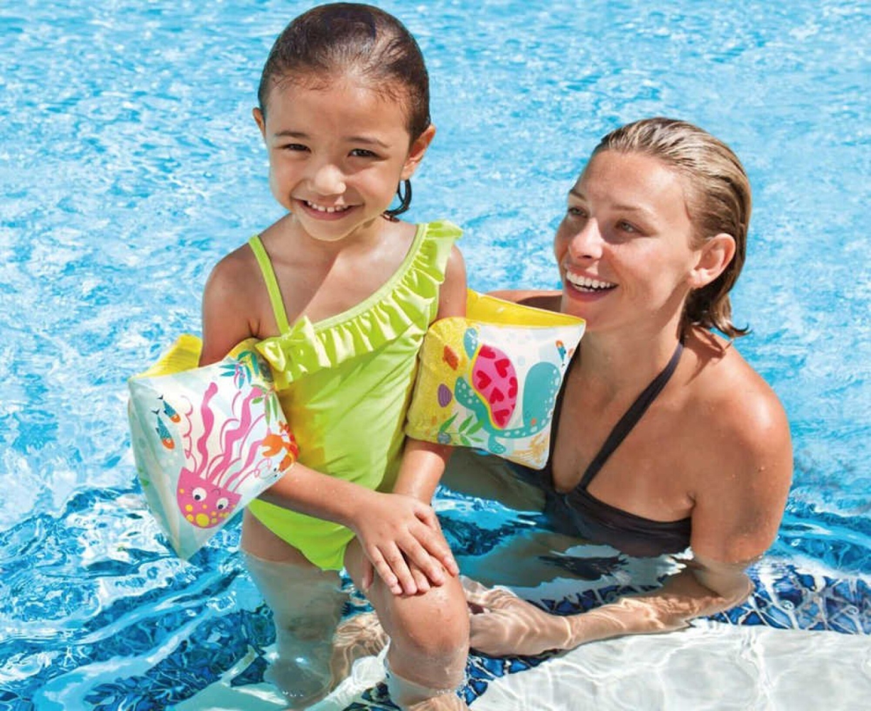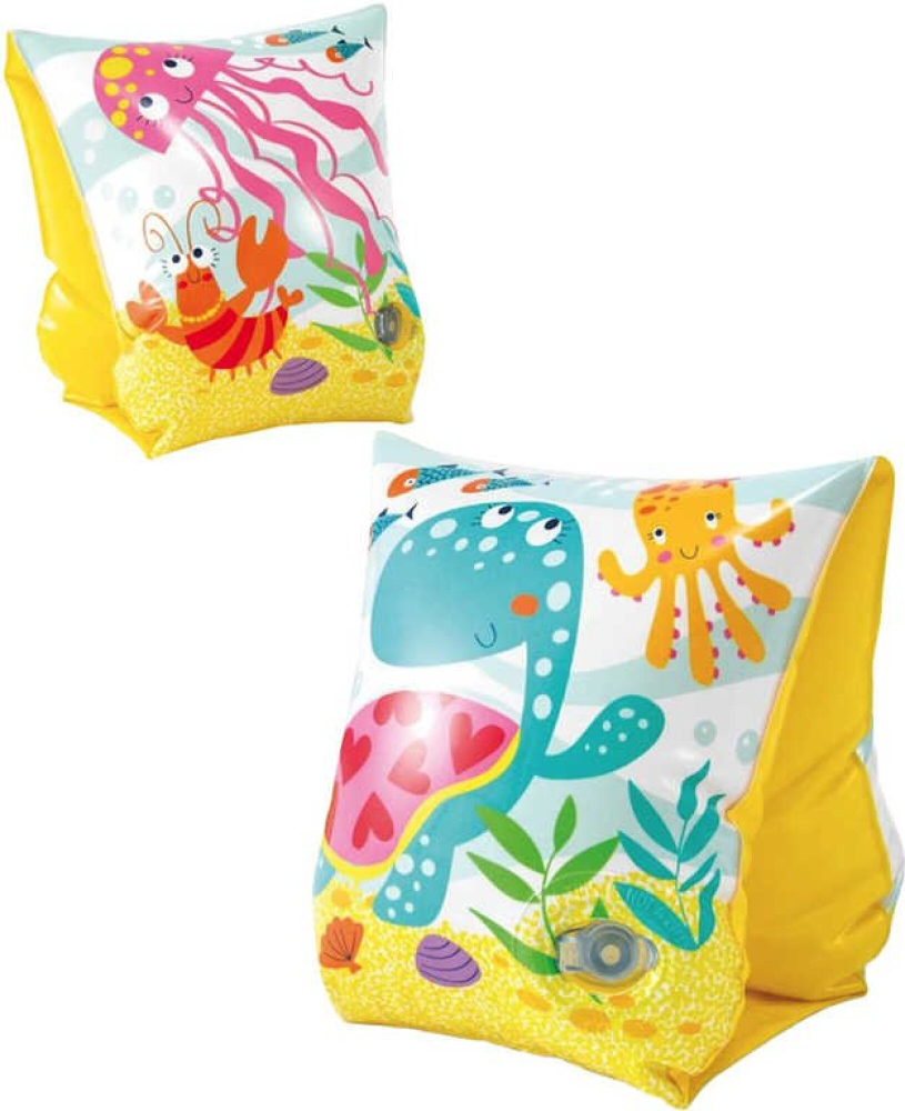 Veselé plovací rukávky s motivem mořských zvířátek, určené pro předškoláky. Každý rukávek má dva ventily. Baleno v krabičce.