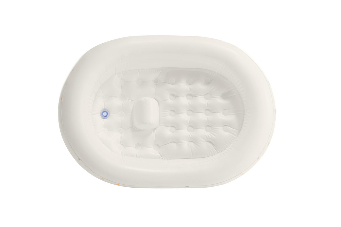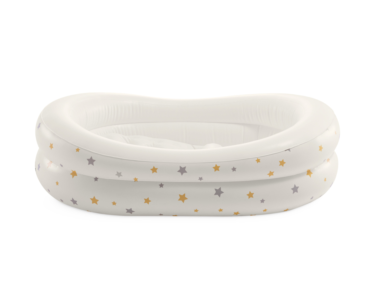 Dětská nafukovací vanička s potiskem hvězdiček. Lehká a snadno přenosná s měkkým a pohodlným povrchem pro šetrné koupání. Podpůrný výstupek pomáhá zabránit sklouznutí miminka. Balení obsahuje ruční pumpu.