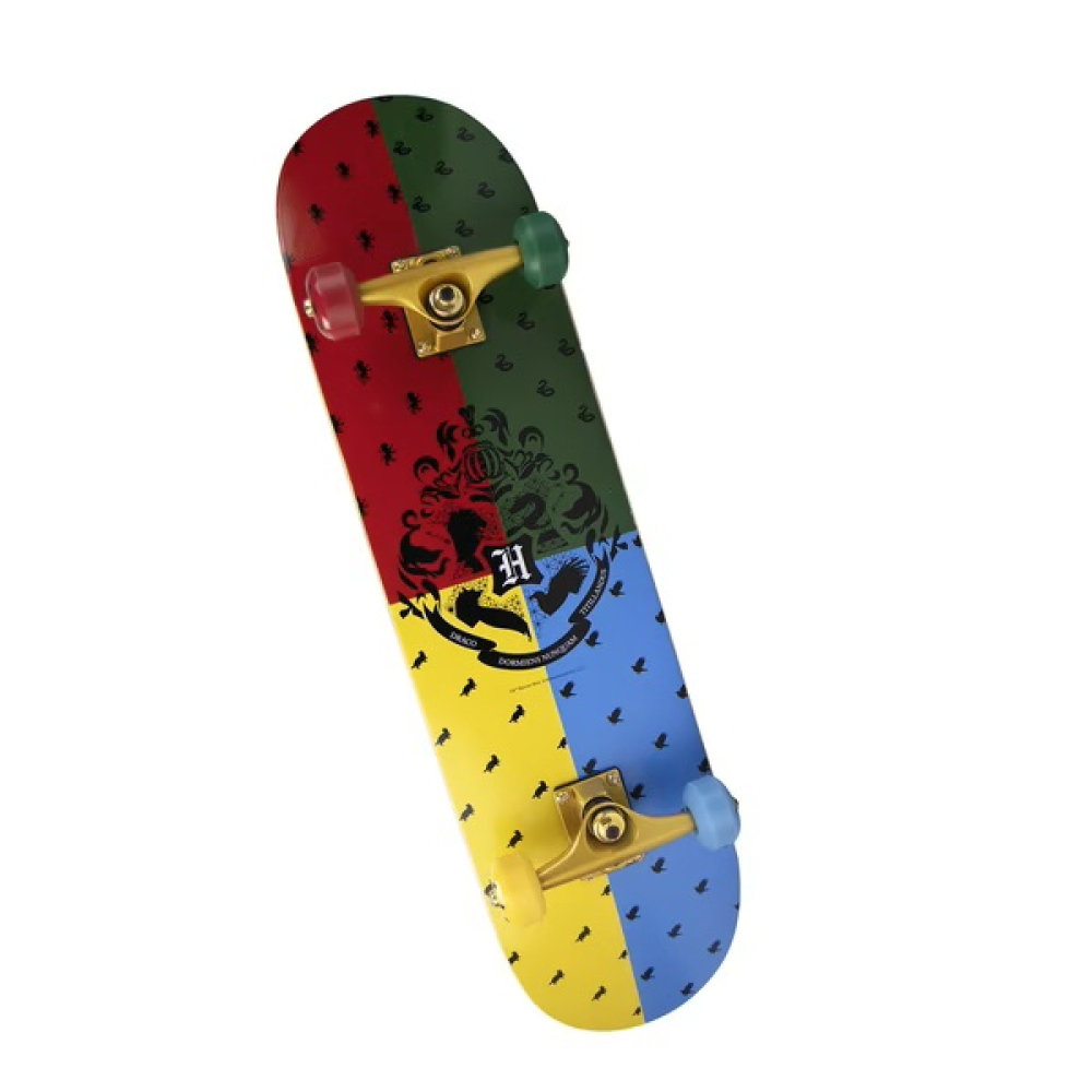 Tento skateboard s motivem Harryho Pottera potěší všechny malé fanoušky kouzelnického světa. Vhodný už pro děti od 8 let. Je ideální jak pro začátečníky, tak pro děti s menšími zkušenostmi se skateboardingem. Vrchní část desky je černá s logem Harry Potter, zatímco spodní stranu zdobí barvy všech čtyř bradavických kolejí – Nebelvíru, Zmijozelu, Mrzimoru a Havraspáru – takže si každé dítě najde tu svou.