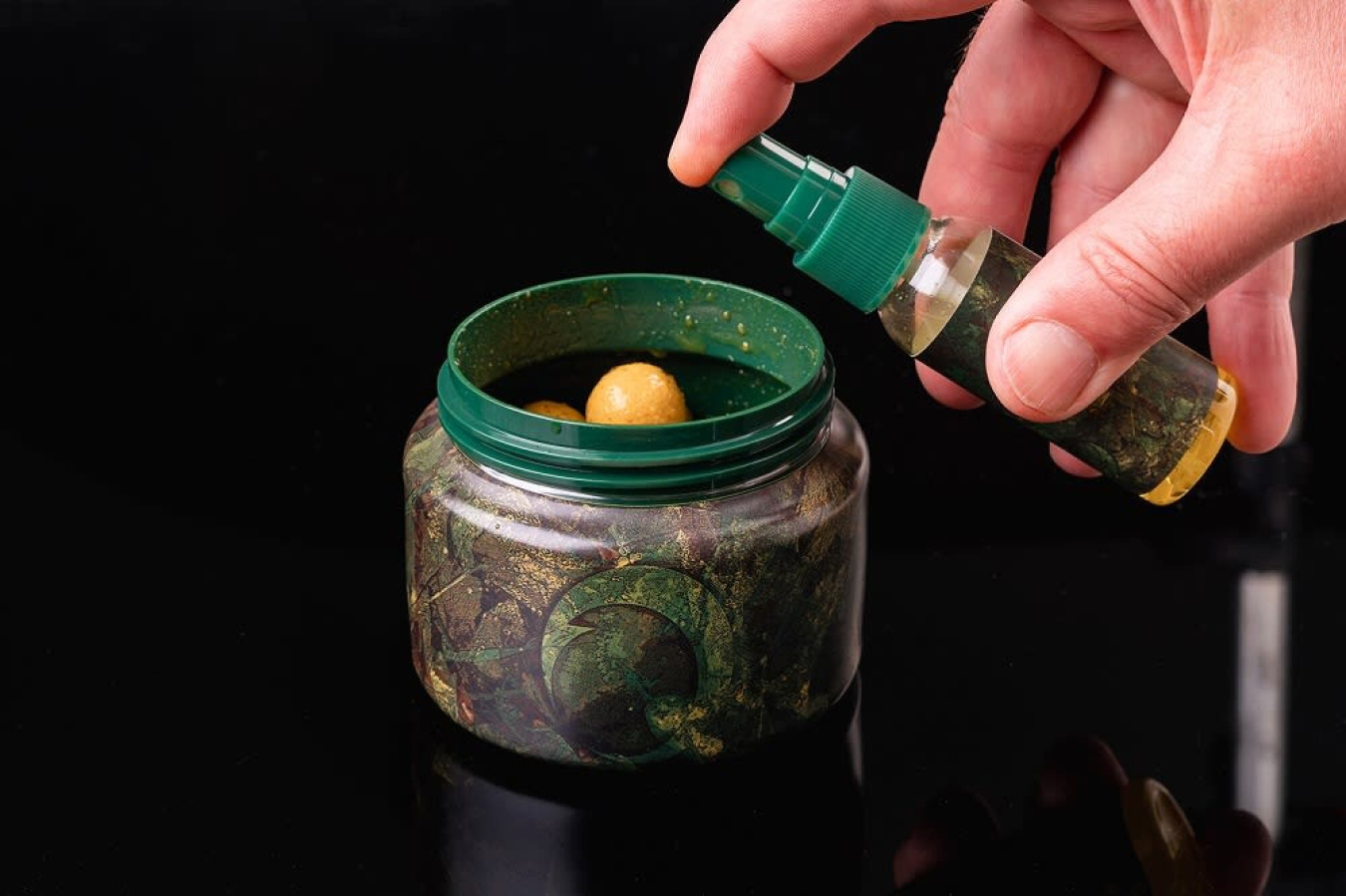 Misku s víčkem o objemu 1,2L na míchání nástrah a případné uskladnění hotových PVA punčoch. Dipovací nádobku na esenci s rozprašovačem. Uzavíratelná nádoba o objemu250ml na dipované nástrahy ( boilies, či pelety ). Menší nádobka na esence s jehlou, která je vhodná zatraktivnění PVA sáčků.