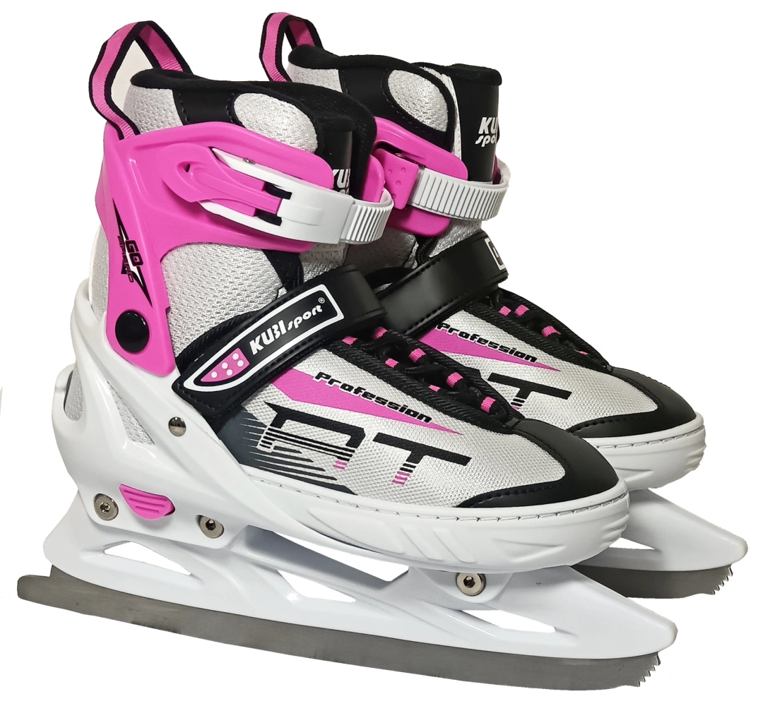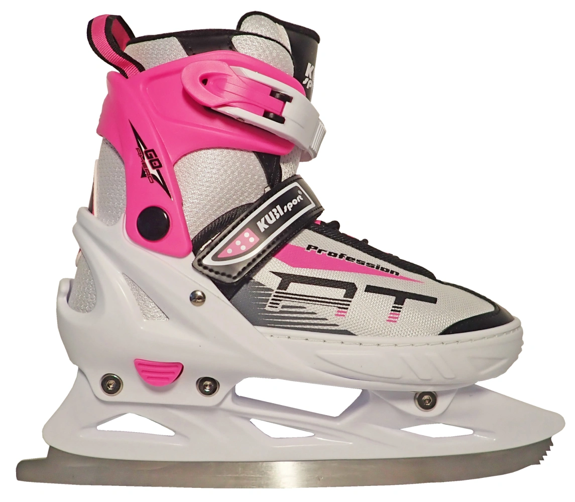 Dívčí brusle, roztahovací - 4 velikosti v jedné botě díky jednoduchému mechanismu na zvětšování a zmenšování skeletu bot. Rozsah nastavení boty na čtyři velikosti 32 - 35 = 20,3 - 22,3 cm. Délka vnitřní stélky, při nejmenší nastavené velikosti, činí 21 cm. Brusle jsou tvořeny plastovým skeletem a vnitřní textilní botičkou, která má měkkou výstelku pro zabezpečení nejvyššího komfortu. Pro dosažení řádného upevnění na nohu je k dispozici klasické šněrování, textilní přezka na suchý zip a plastová přezka slouží k dokonalemu upnutí boty na nohu. Brusle mají vodoodpudivou povrchovou úpravu (impregnaci), která zabraňuje pronikání vlhkosti do boty a zároveň tak brání prochladnutí nohy. Přesto doporučujeme občas brusle naimpregnovat běžně dostupnými impregnačními prostředky.