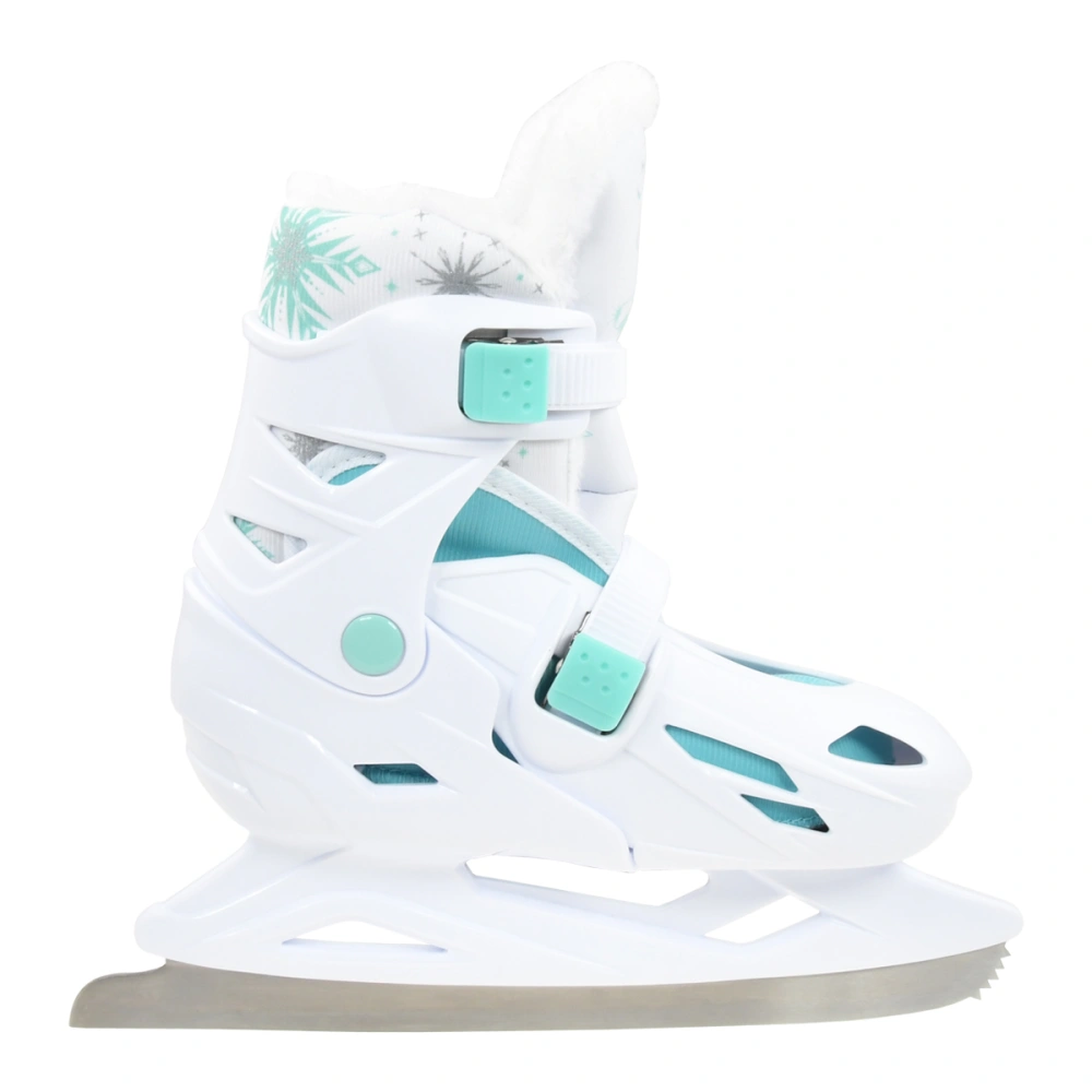 Dívčí nastavitelné zimní brusle. Rychleschnoucí prodyšná výstelka pro pohodlné nošení. Brusli lze jednoduše nastavit dle potřeby na 4 velikosti pouhým stisknutím tlačítka na boku v patě brusle.
