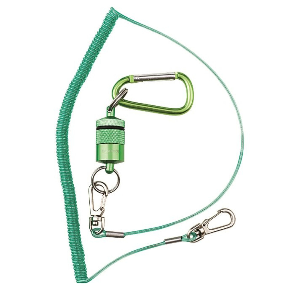 Specifikace: - materiál: hliník, nylon - pružina s karabinkou pro rychlou obsluhu - velmi silný magnet - barva: zelená