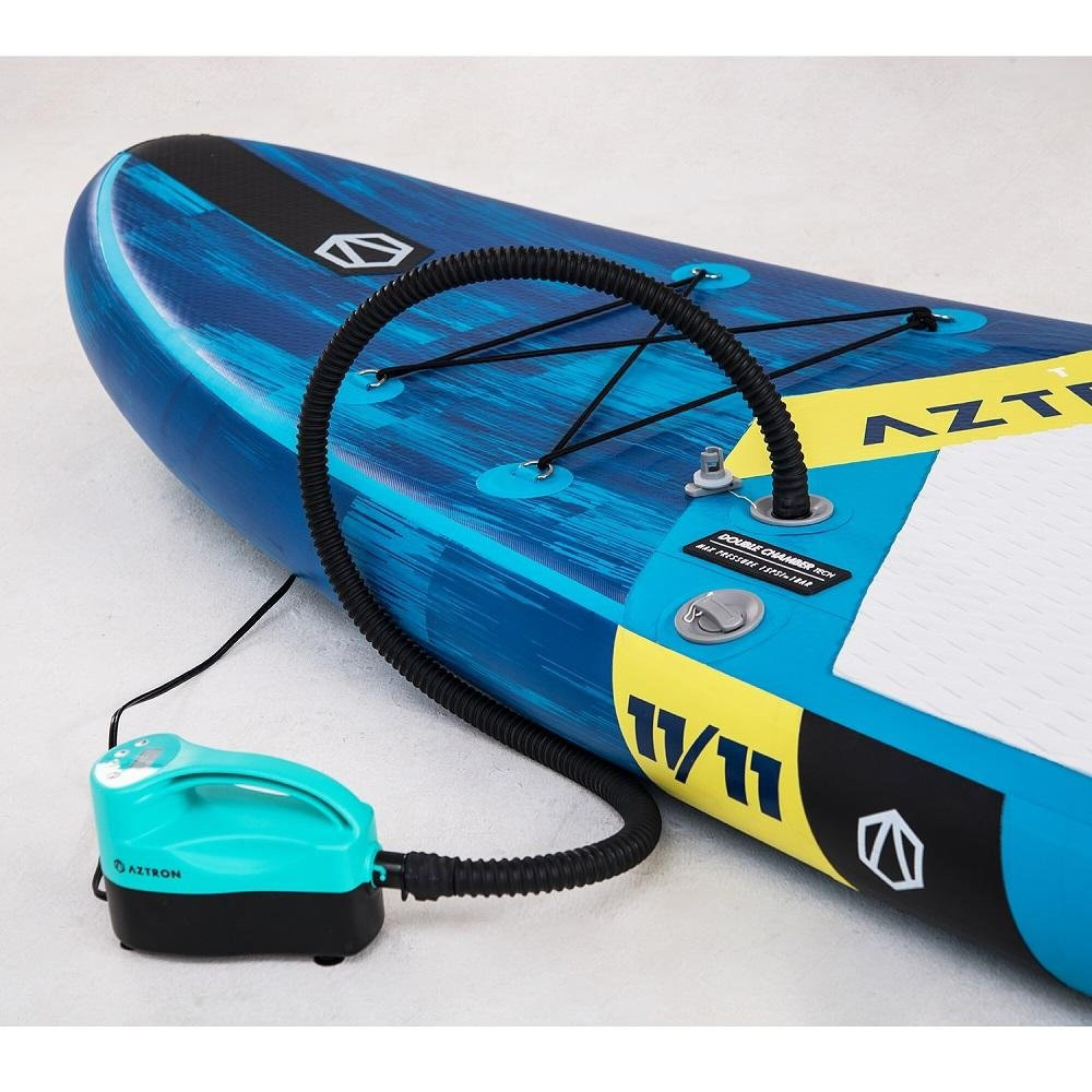 Elektrická pumpa do auto napájení, tlak až 16 PSI, funkce automatického vypnutí, vestavěný tlakoměr. Elektrická pumpa na paddleboardy 12V SUP Pump je důležitým příslušenstvím pro všechny majitele paddleboardů či nafukovacích kajaků. Díky této pumpě svůj paddleboard snadno, rychle a bez námahy nafouknete a jste připraveni vyrazit na vodu. Pumpa dokáže nafouknout paddleboard či kajak až do tlaku 16 PSI během 10 minut. Dle svých potřeb si však můžete maximální výstupní tlak nastavit libovolně již od 1 PSI. Požadovaný tlak si můžete jednoduše kontrolovat na vestavěném tlakoměru a po jeho dosažení se pumpa automaticky vypne. Pumpu lze připojit k auto napájení. Elektrická pumpa na paddleboardy 12V SUP Pump má odolnou konstrukci a pro venkovní použití je tak ideální.Pumpa je vhodná i na dovolenou do auta.