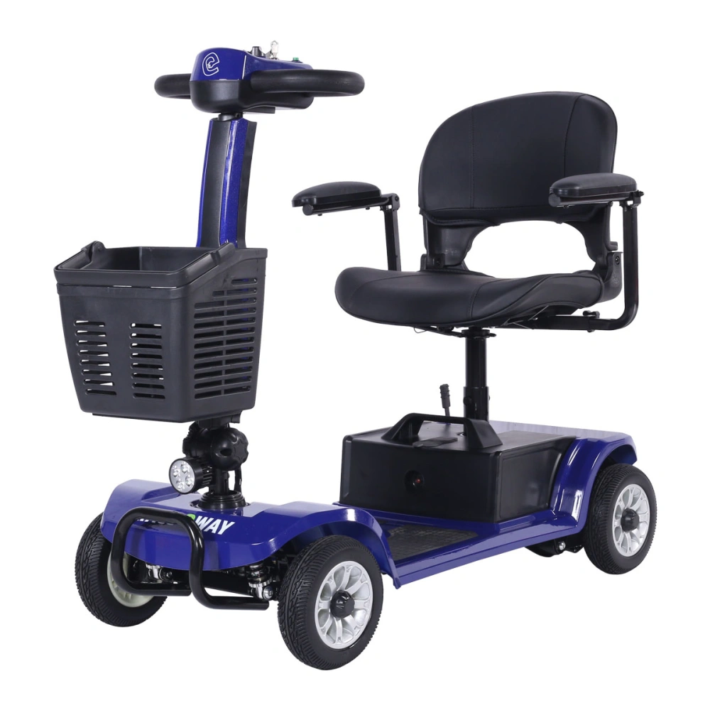 - čtyřkolový elektrický skútr s výjimečným výkonem 250 W se ovládá pomocí páček na řídítkách, na ovládacím panelu je možné mimo jiné otočným knoflíkem omezit i maximální rychlost, plynule reaguje na stlačení páčky s ovladačem výkonu a to i v kopcovitém terénu nebo při rozjezdu z křižovatky