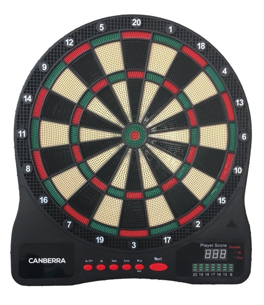 Šikovný elektronický terč v atraktivním designu. Díky 31 vestavěným hrám a více než 285 variantám si mohou vybrat začátečníci i pokročilejší hráči. Součastně může hrát 1-8 hráčů, výchozí počet hráčů je 2. Terč je navržen na napájení 3 x 1,5 V AA (LR6) baterií (není součástí). Pro úsporu baterií je tento terč vybaven režimem automatického vypnutí. Pokud terč nepoužíváte, přejde za 30 minut do režimu spánku.