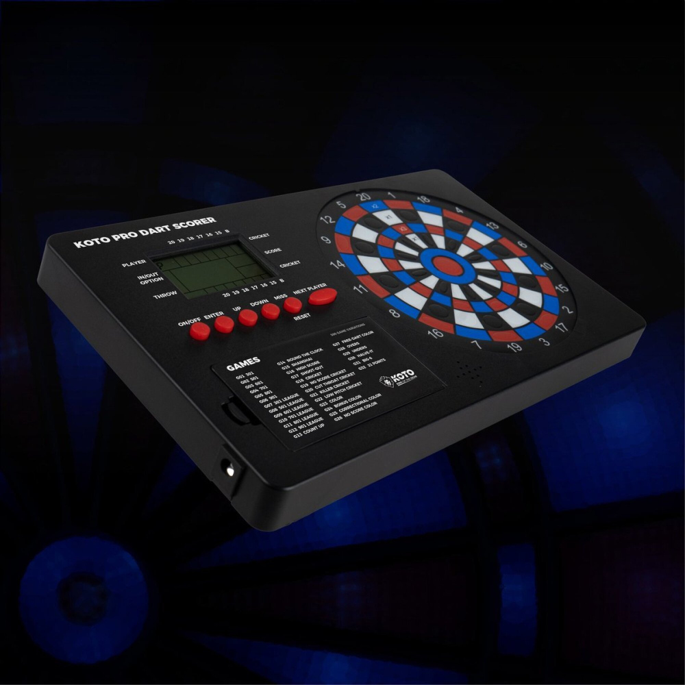 Speciální elektronický mini-terč KOTO DUBLIN je vyroben z odolného materiálu pro dlouhou životnost. Elektronický terč je celý v atraktivním deskovém obdelníkovém sestavení. Díky možnosti nastavení 32 vestavěných her s 590-ti různými variantami si najdete tu správnou hru pro sebe. Elektronický mini-terč/počítatel skóre ocení zejména majitelé klasických terčů, kteří si chtějí zahrát hry, jako na elektronickém terči. Princip je jednoduchý, stačí hodit na Váš terč a následně si "zapsat" hody do tohoto terče, který reaguje jako klasický elektronický terč. Můžete si tak užít obrovské množství zábavy, hry a výhody elektronického terče, jen díky této praktické pomůcce.