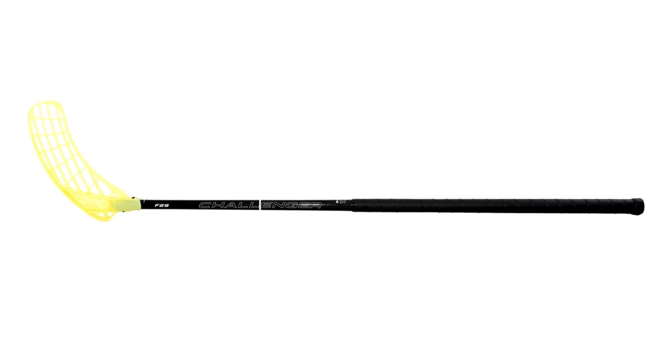 Florbalová hokejka Zone Hyper Challenger 29 Ice Yellow je určená všem hráčům. Osazená je čepelí Hyper, která výborně vede balónek. Tvrdost hole je střední, určená pro většinu hráčů a hráček. Základní omotávka absorbující pot a kulaté držení v klasické šířce. Černý lesklý shaft s bílým potiskem a žlutou čepelí.