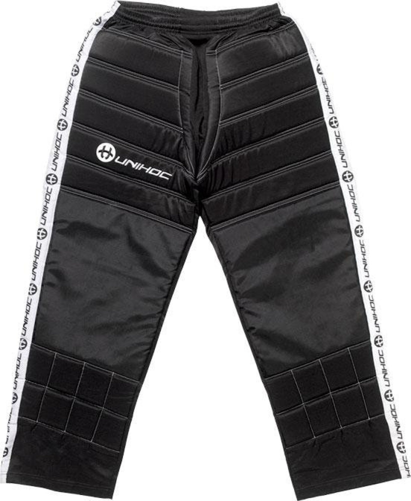 Vhodné pro závodní i rekreační brankáře florbalu. Kalhoty z odlehčených, ale vysoce odolných polyesterových vláken nabízejí dostatečný komfort a vysoký stupeň ochrany. Dokonalý střih a v oblasti kolen speciální zesílený materiál. Materiál kalhot je lehké polyesterové vlákno, které je odolné a nenáročné na údržbu. V oblasti kolen je použit vysoce odolný materiál. Pas je opatřen všitou gumou. Prošívaný materiál v oblasti pasu zvyšuje odolnost v tomto namáhaném místě a zároveň chrání boky a hýžďové svaly.