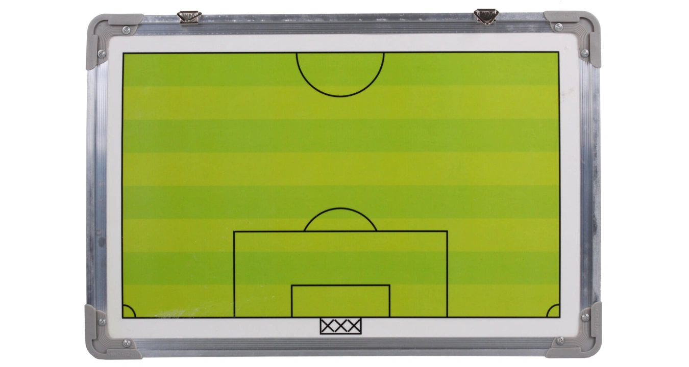 Trenérská tabule na fotbal je nezbytný doplněk každého fotbalového trenéra napříč všemi soutěžemi. Taktická fotbalová tabule Merco FOTBAL 40 je oboustranná magnetická deska s barevným provedením poloviny z jedné strany a z druhé strany celého fotbalového hřiště v hliníkovém rámu. Součástí fotbalové tabule Merco FOTBAL 40 je 28 magnetů (s motivy čísel, míče a rozhodčích), dva popisovače a stírací houbička. Závěsná trenérská tabule Merco FOTBAL 40 je ideální pomocník pro taktické porady ve fotbalové šatně.
