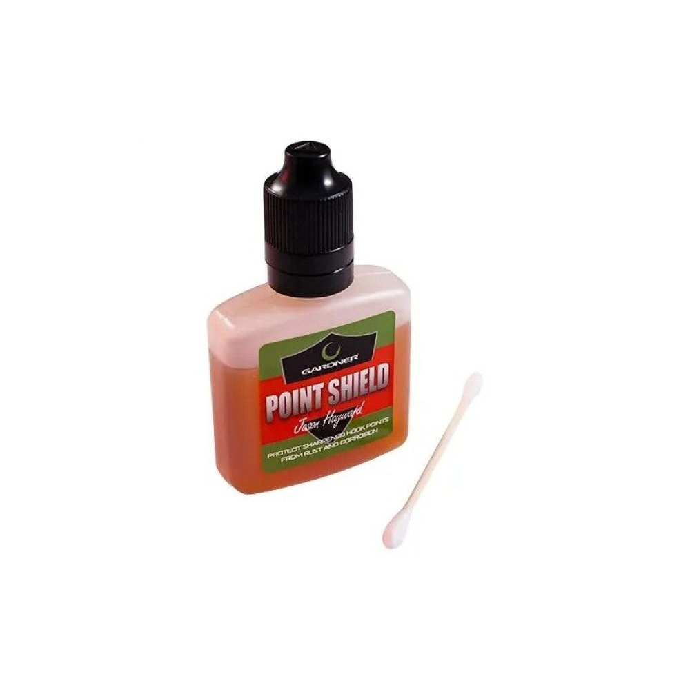 Jednoduše naneste malé množství „Point Shield“ na konec tamponu a na naostřenou část suchého háčku aplikujte pohybem nahoru a dolů. „Point Shield“ okamžitě ochrání hroty háčků, avšak pro maximální ochranu jej naneste na háček před použitím. Po aplikaci nekontrolujte ostrost hrotu háčku, mohlo by dojít k odstranění produktu. Podle potřeby znovu aplikujte. „Point Shield“ byl speciálně navržen pro použití pouze k ochraně naostřených rybářských háčků.