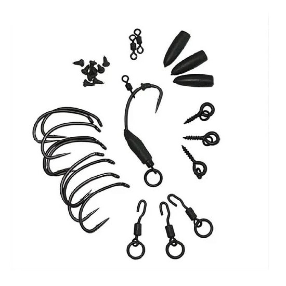 Sada obsahuje: - 1 x hotový návazec Ronnie Rig - 9 x háček s protihrotem - 9 x zarážka Hook Stops - 3 x rukávky Tungsten Ronnie Sleeves - 3 x obratlík QC Hook Flexi-Ring Swivels - 2 x obratlík Hook Swivels - 3 x kolíček s kroužkem Flexi Bait Screws Odkaz na video: http://www.youtube.com/watch?v=dTMOI33Fp3o