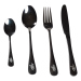 Příbory - Praktická příborová sada, která je vyrobená z černé nerez oceli. Sada je dodávána v praktickém textilním obalu uzavíratelném na zip.Sada obsahuje: Polévkovou lžíci, vidličku, nůž a čajovou lžičku.