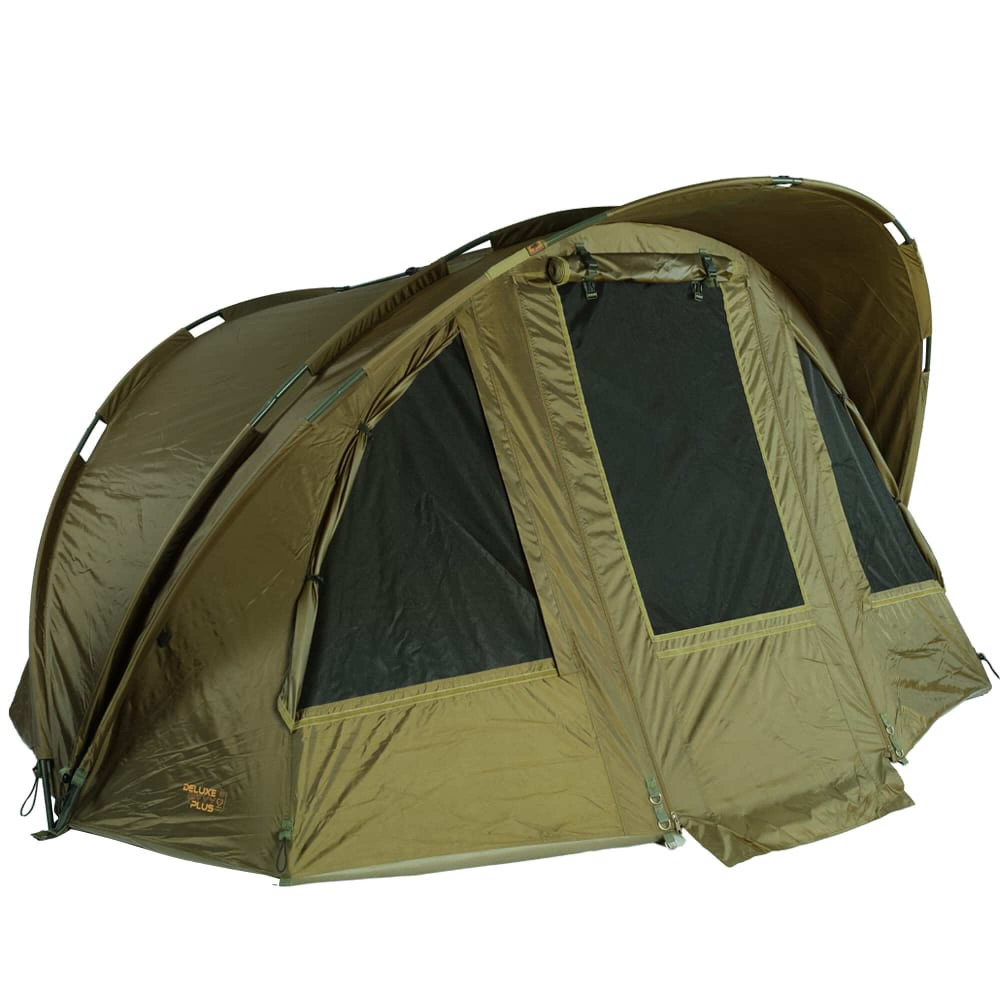 Přístřešek trubkové konstrukce, která se skládá ze tří žeber a o výztuhu se starají rozpěrné teleskopické tyče. Na tento bivak, byl použit vodě odolný materiál 5 000mm HH, té nejvyšší kvality, který je 100% nepromokavý a máme ho prověřený u řady našich úspěšných modelů. Páskou podlepené švy a ukotvení na zavrtávací kolíky, které jsou v ceně přístřešku. Bivak je vybaven větracím systémem jak v přední části, tak v zadní části najdete dvě obří ventilační okna, které zajistí maximální odvětrání. Velký přední kšilt nad vchodem, je navíc osazen dvěma praktickými úchyty na pruty. Přední vchodová část má tři výměnné panely na suchý zip, celo zakrytá, slída nebo moskytiéra. Další vychytávkou tohoto bivaku je, že v nepřízni počasí můžete ve vchodové části vytvořit okénko, díky použití dvojitých jezdců zipu. Součástí bivaku je přepravní nylonová taška.