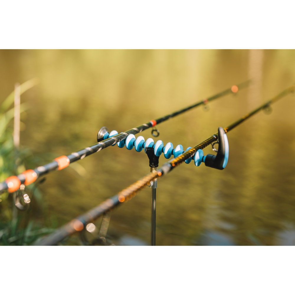 Díky své konstrukci jí klidně můžete použít na více prutů. Hrazda je vhodná taktéž pro příznivce plavané. Boční vyvýšený okraj zabrání vyskočení prutu i při razantním záběru. Jedenáct poloh pro uložení prutů, včetně výřezů na vlasec.