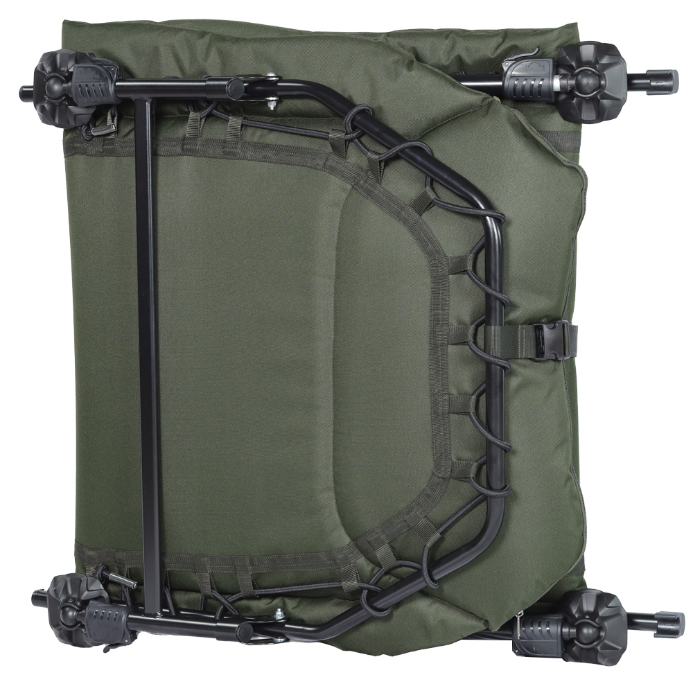 Na lehátku byla použitá pevná ocelová konstrukce a silné polstrování v kombinaci tkaniny a hřejivého polar fleece. Ve střední části naleznete výztuhu, která je propletená elastickým lankem a díky ní si můžete nastavit požadovanou tuhost. Pod hlavou je měkký polštář, který lze jednoduše vyjmout.