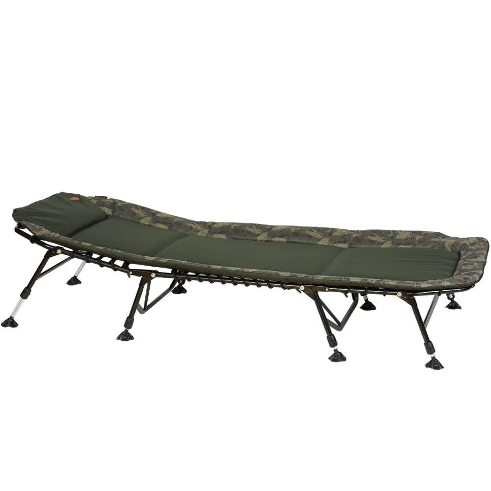 Kvalitně zpracovaná konstrukce má vysokou nosnost do 150kg. Nožičky lehátka jsou zakončeny velkými packami proti zaboření do bláta. Každý rybář si může na tomto lehátku nastavit požadovanou tuhost matrace.- Polstrování v kombinaci zelené a kamuflážové látky- 100% ploché provedení celého lehátka- Ocelová konstrukce o průměru 22 a 25 mm- Výškově nastavitelné nohy a velké packy proti zaboření do bláta- Kvalitní zámek aretace nastavení výšky nohou jednou rukou- Rozměry: 207 x 74 x 26 až 37 (maximální prodloužení nožiček v cm)- Transportní rozměry: 85 x 82 x 28 cm- Váha: 9,5 kgOdkaz na video: http://www.youtube.com/watch?v=ej17fu2NG_U