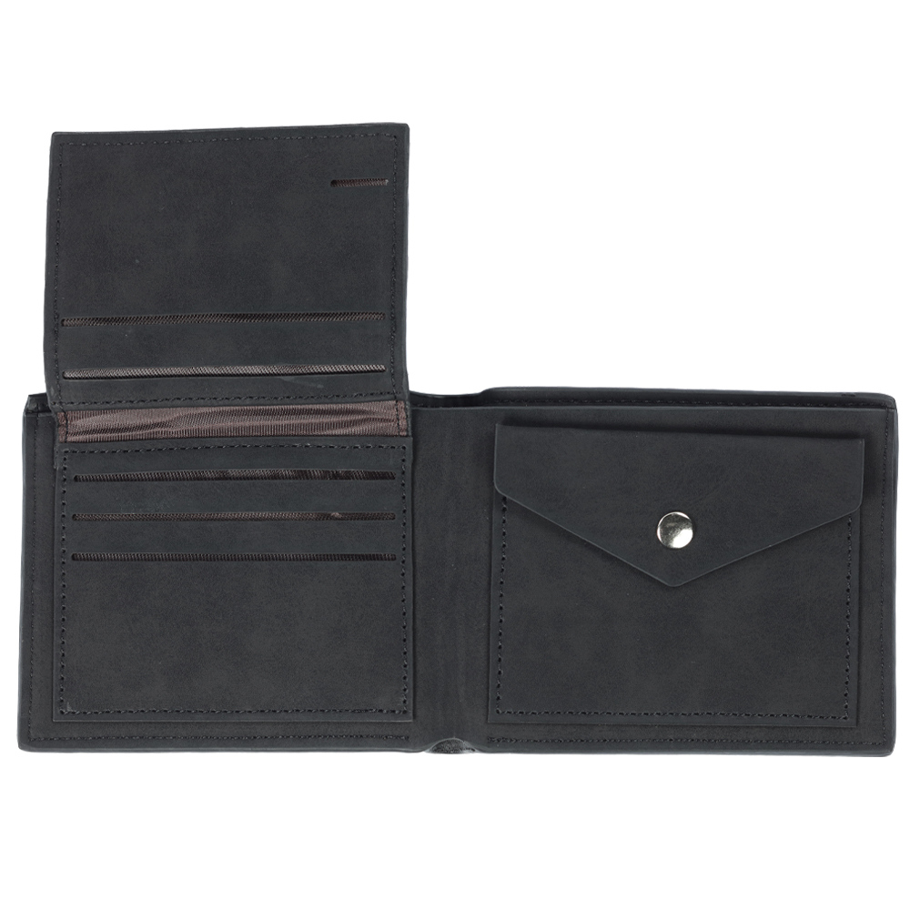Peněženky jsou vyrobeny z kvalitní syntetické kůže a jsou velmi příjemné na dotyk. Členění peněženky: - 5 přihrádek na karty - 1 průhledná přihrádka na fotky nebo doklady - 2 přepážky na bankovky - 1 velký mincovník - Rozměry: 12 x 9,5 x 3 cm - Materiál: syntetická kůže - Barva: černá