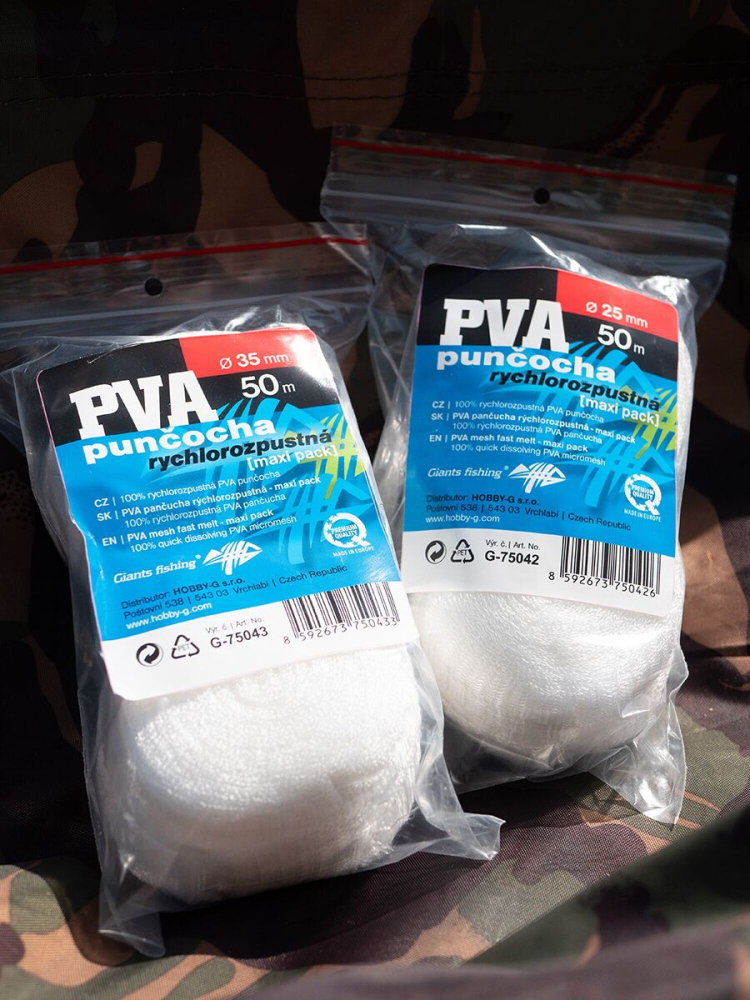 Tato nová řada rychlorozpustného PVA, je vyrobena z jemnějšího ale stále pevného vlákna a zajistí Vám 100% rozpustnost i v chladnější vodě. Toto provedení „ Micro „ má jemná oka, díky čemuž nepropadnou ani drobné části krmení. Díky nejmodernějším technologiím výroby, tak můžete toto rychlorozpustné PVA používat po celý rok. Rozpustnost v teplé vodě může být 30-40s a v chladné vodě 2 až 3minuty.