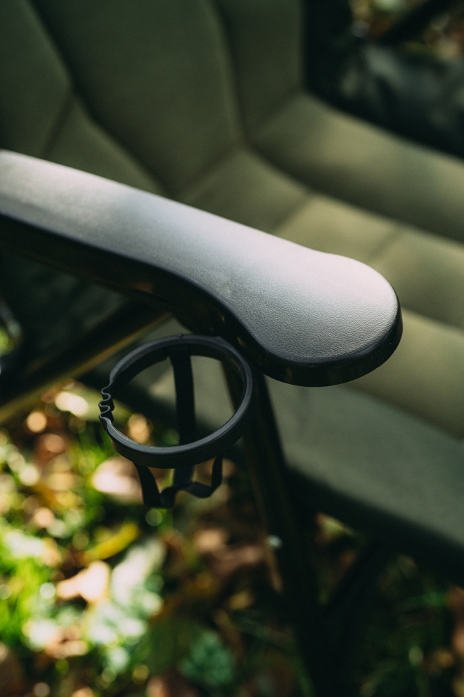 Rychlé sestavení a snadné polohování opěradla, pomocí područek, tak dělá křesílko ideálního parťáka na rybářské výpravy.