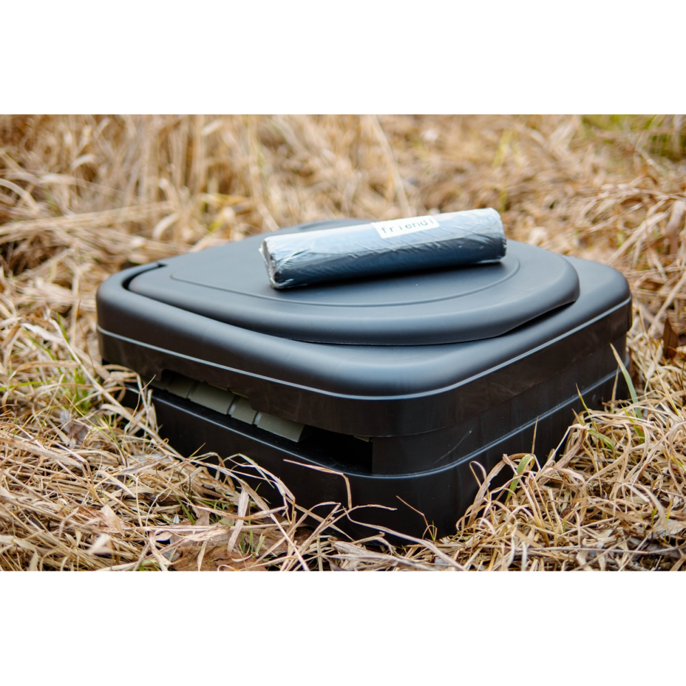 Skvělé transportní rozměry a rychlé sestavení dělají z této toalety pomocníka na místa, kde není přístup k běžné toaletě. Tento větší model je vhodný i pro větší osoby, díky své velikosti a nosnosti až 150 kg. Toaleta je dodávána včetně přepravního textilního obalu. Součástí balení je 12ks biologicky odbouratelných plastových sáčků, které se v přírodě snadno rozloží.
