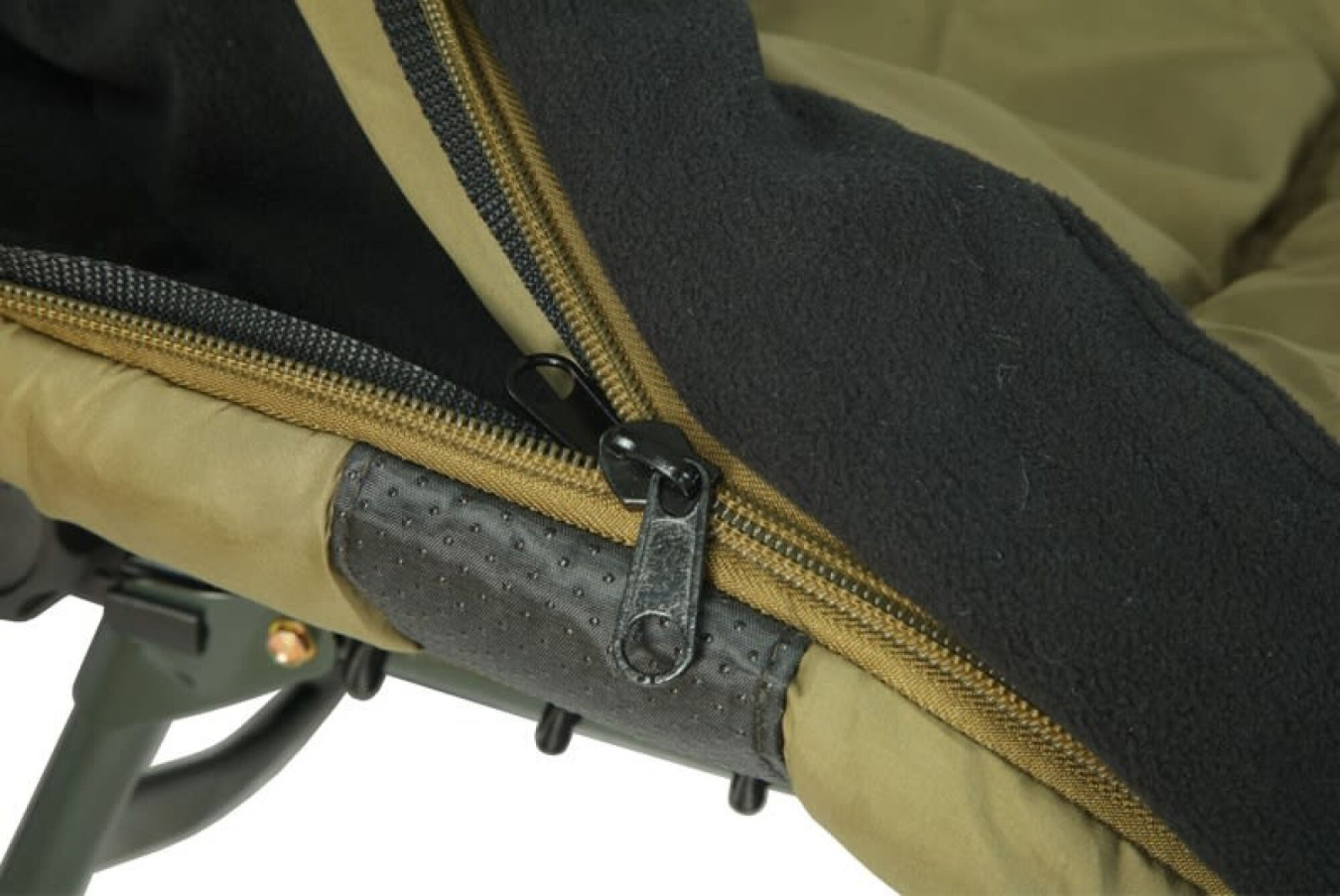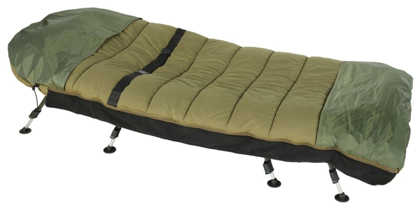 Plně prošívaný microfleece černé barvy je vyplněn 100% dutým vláknem pro extrémní teplo a komfort. Ve vnitřní části spacího pytle naleznete kapsu na zip, která je určena pro mobilní telefon. Pod hlavou je na zip odnímatelný polštářek, který zajistí opravdový komfort. Na obou stranách spacího pytle (u hlavy a nohou) jsou ze spodu našité převleky, které se pouze přetáhnou přes vršek a spodek lehátka a zajistí tak neomezený a bezpečný pohyb. Ve střední části spacího pytle je popruh, který se díky přezce snadno upevní k lehátku a zabrání kroucení spacího pytle. Nově jsou u tohoto modelu překryty boční zipy z vnější strany, aby se zabránilo nežádoucímu úniku tepla. Spací pytel je dodáván s přenosnou taškou.