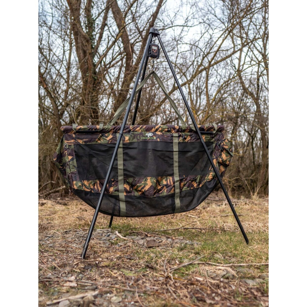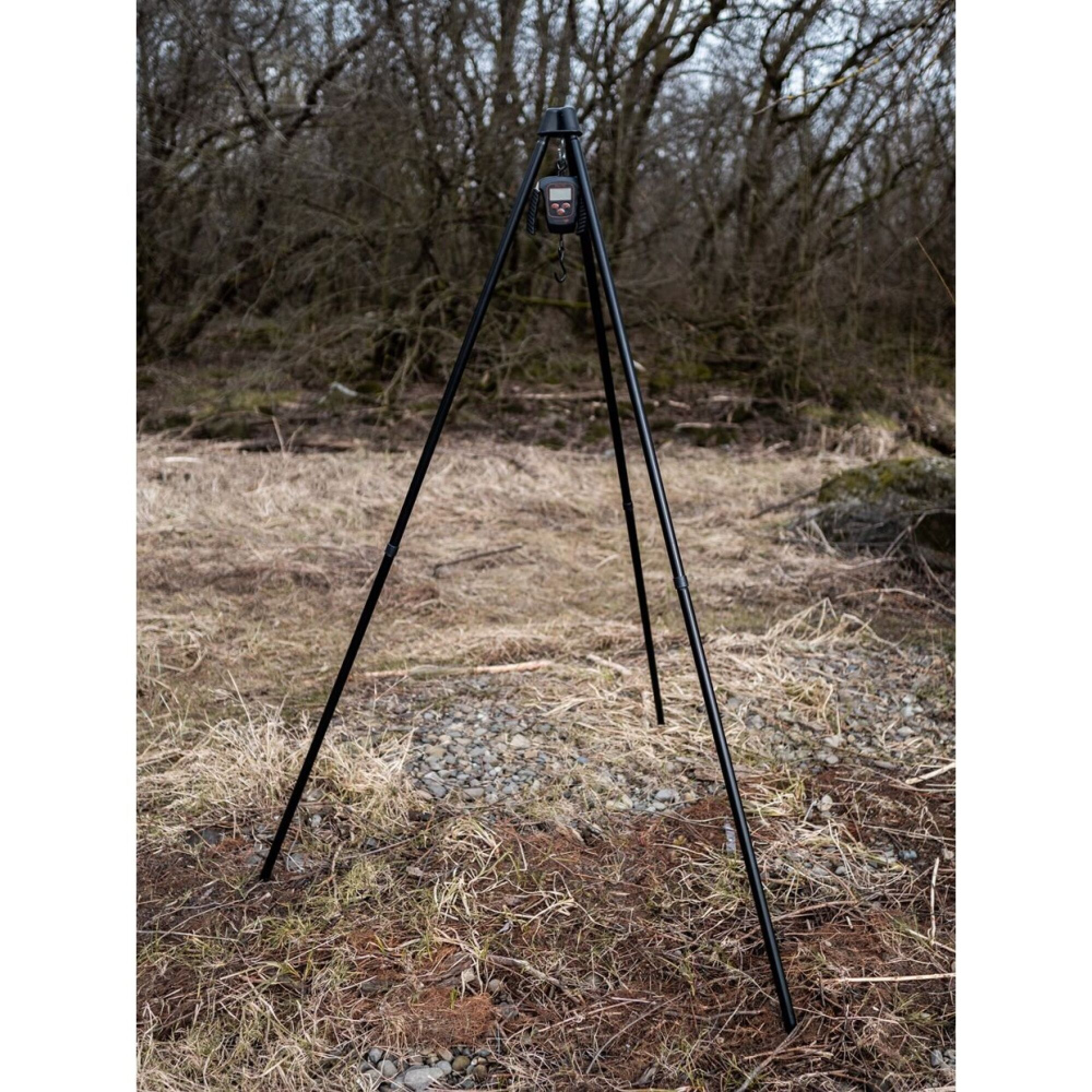 Kvalitní zpracování a povrchová úprava v černé barvě. Nohy stojanu jsou propojeny silnou gumou s gumovou ochranou proti oděru, díky tomuto systému sklápěný stojan snadno a rychle rozložíte a složíte. Ve vrchní části je robustní plastová hlava, která je ve středové části osazena otočným hákem, který slouží k zavěšení váhy.
