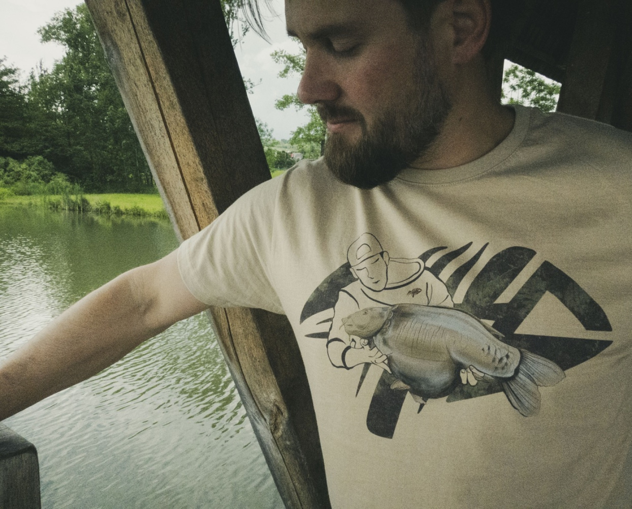 Giants fishing Tričko pánské béžové Rybář s kaprem