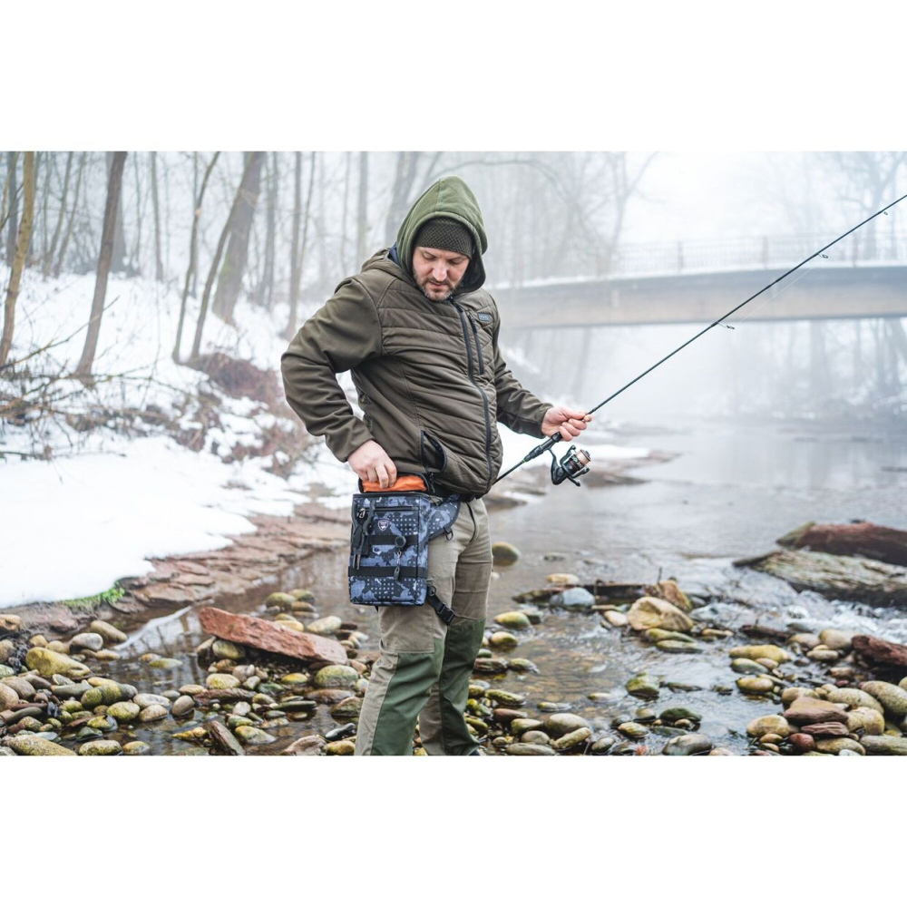 - Vrchní popruh připevněte k pasu a ten spodní k stehnu