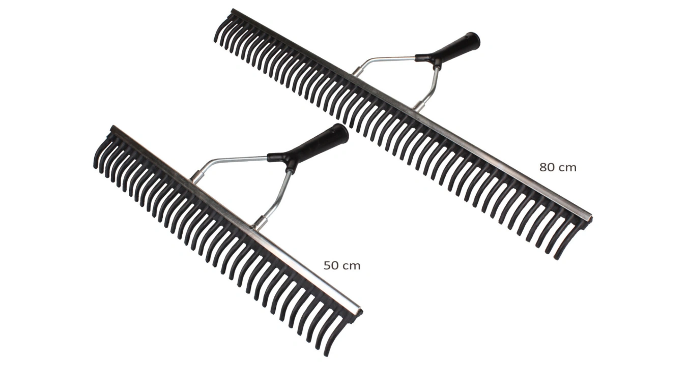 Hrábě určené pro šetrné odstranění spadaného listí nebo odpadků z tenisových kurtů. Vyrobeny z kvalitní gumy, oceli a PVC. Při použití těchto hrábí nedochází k narušení samotného povrchu hřiště a to tak zůstane neponičené. Hrábě nabízíme ve dvou šířkách (50 a 75 cm). Dodávány jsou pouze samostatné hrábě bez násady.