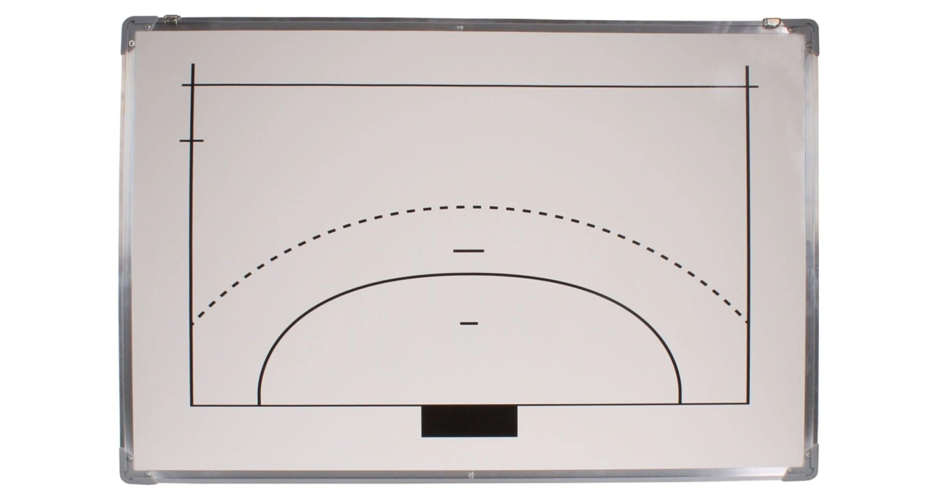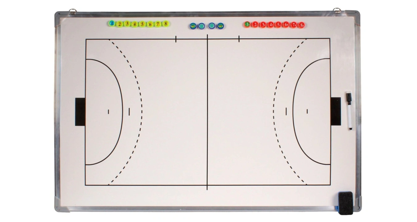 Velká závěsná tabule na házenou v hliníkovém rámu, praktický doplněk pro trenéry a sportovní kluby. Rozměry 90 x 60 cm.