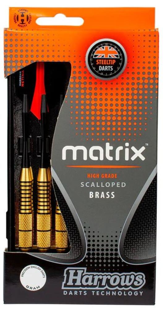 Barevně konturované zářezy dodávají mosazným šipkám řady Matrix nejen stylový vzhled, ale i optimální grip, který hráčům poskytuje trvalou kontrolu nad hodem. High tech násadky a aerodynamické letky doplňují tuto skvělou letovou formaci.